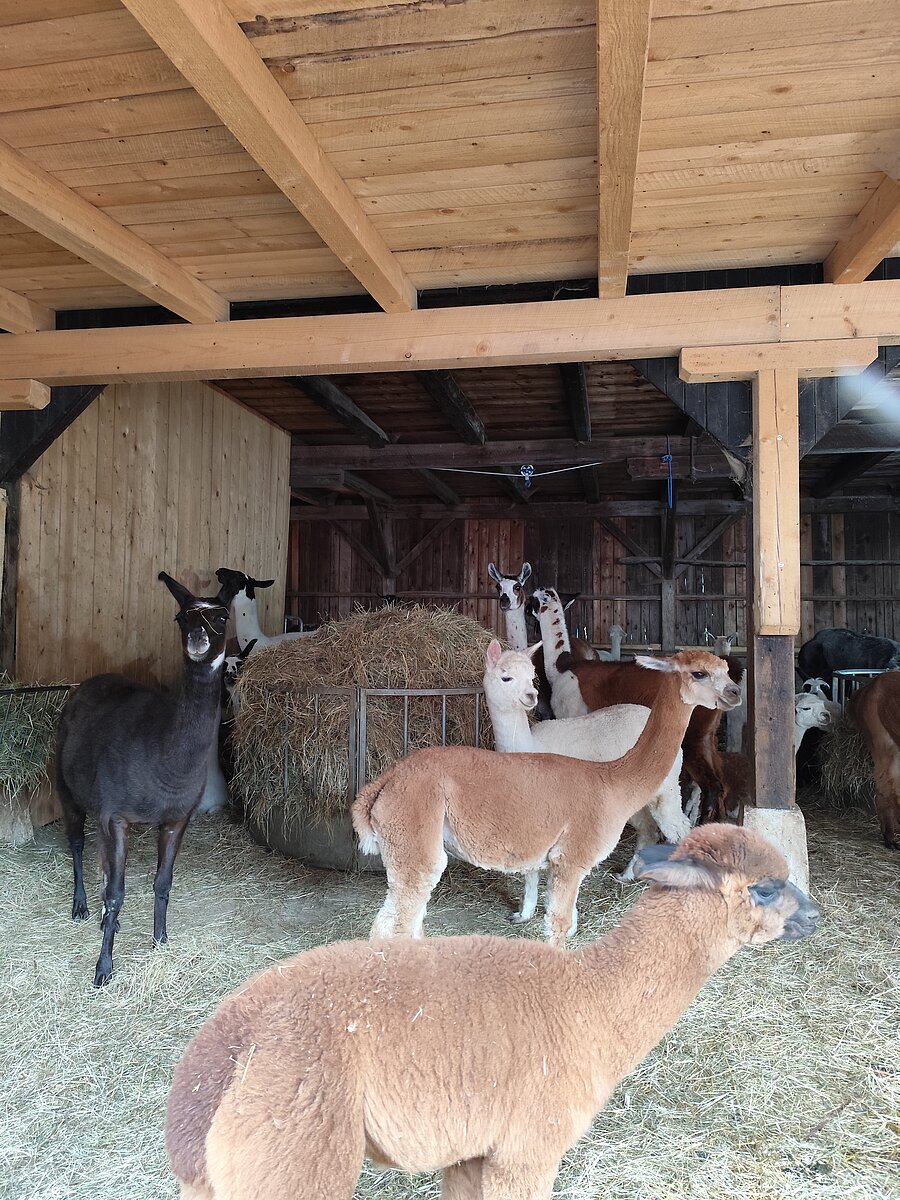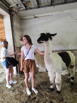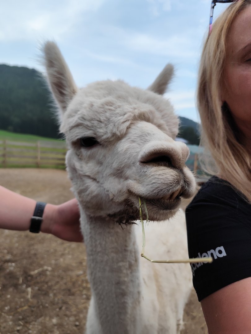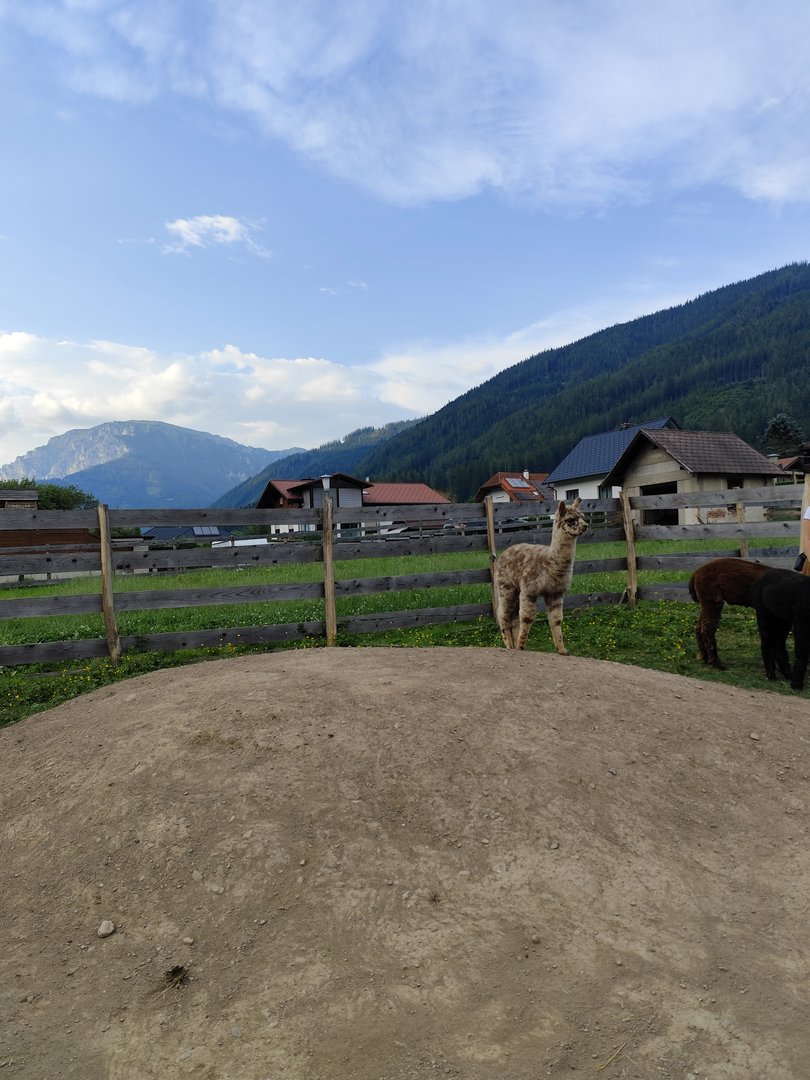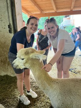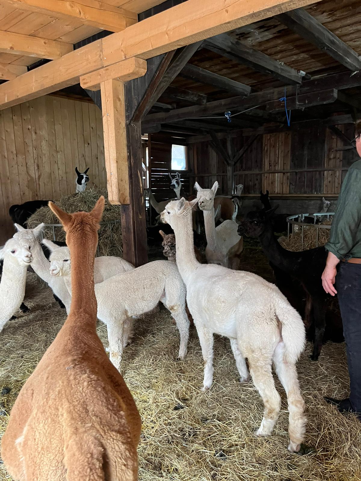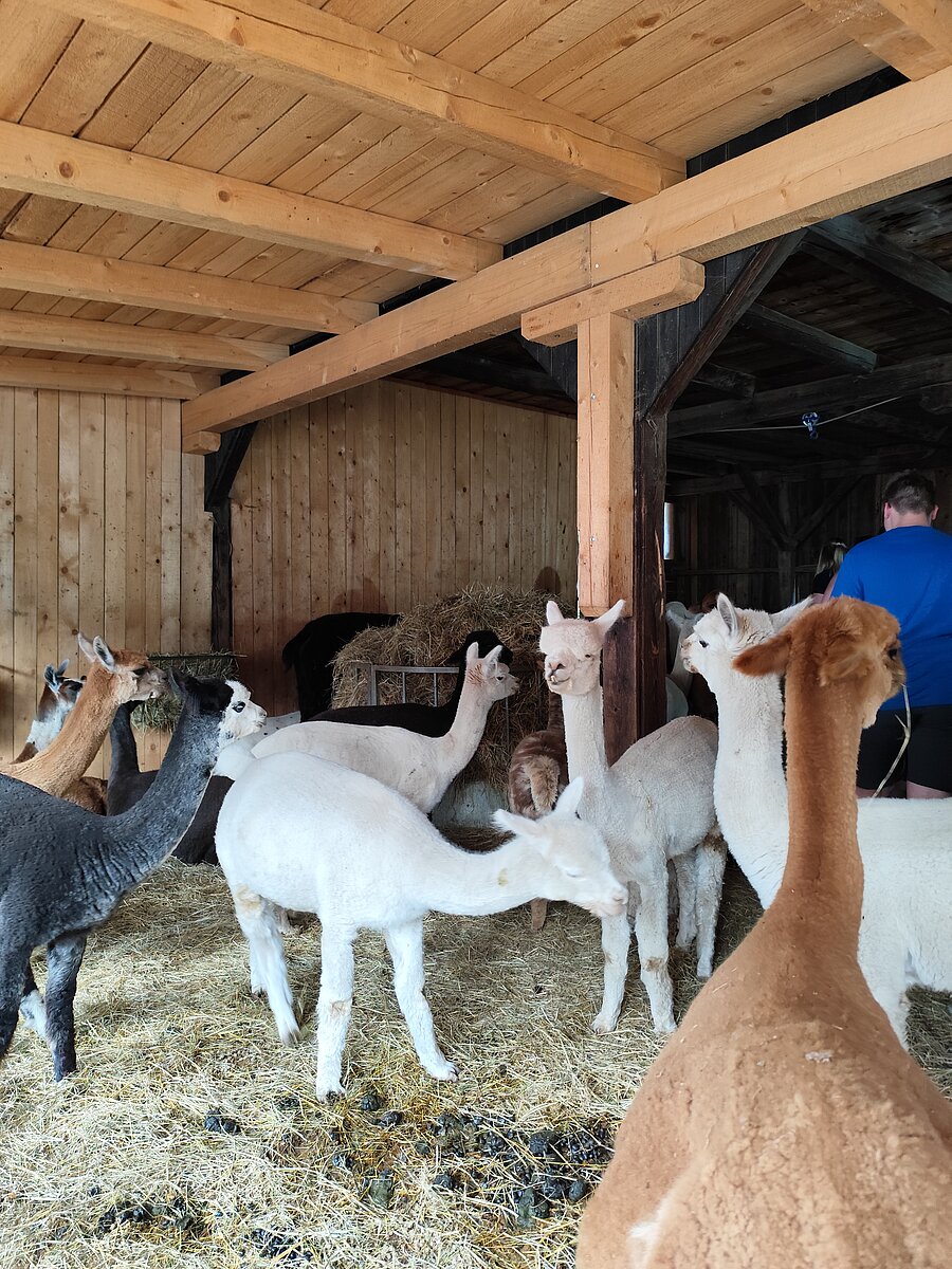 Am Dienstag, dem. 9. Juli, besichtigten 30 Landjugend-Mitglieder aus den Bezirken Bruck/Mur, Mürzzuschlag und Leoben den Pattererhof der Familie Friedam/Kaufmann in Tragöß. Zu besichtigen gab es dort so einiges. Angefangen mit 3 Kamelen, davon ein noch sehr junges Trampeltier namens Karl. Auch die zwei Hängebauchschweine haben sich bei unserem Besuch zeigen lassen. Weiter ging es dann auch sofort in den Stall der Alpakas und Lamas. Um die 50 Tiere tummelten sich im Stall herum und wir durften die Stuten füttern. Ein weiteres großes Highlight war auf jedenfall der kurze Spaziergang zu den zwei Rentieren. Cupid und Comet zeigten sich in ihrer vollen Pracht und hatten ebenfalls keine Scheu vor Besuchern. Zum Abschluss durften wir die männlichen Alpakas mit Streicheleinheiten verwöhnen.