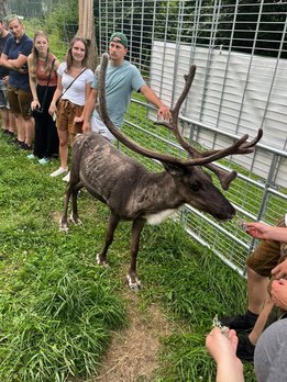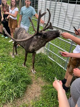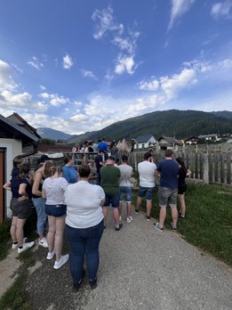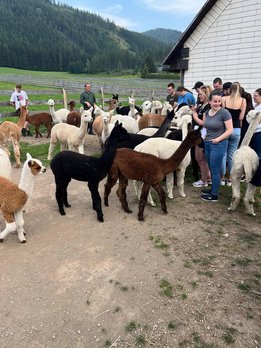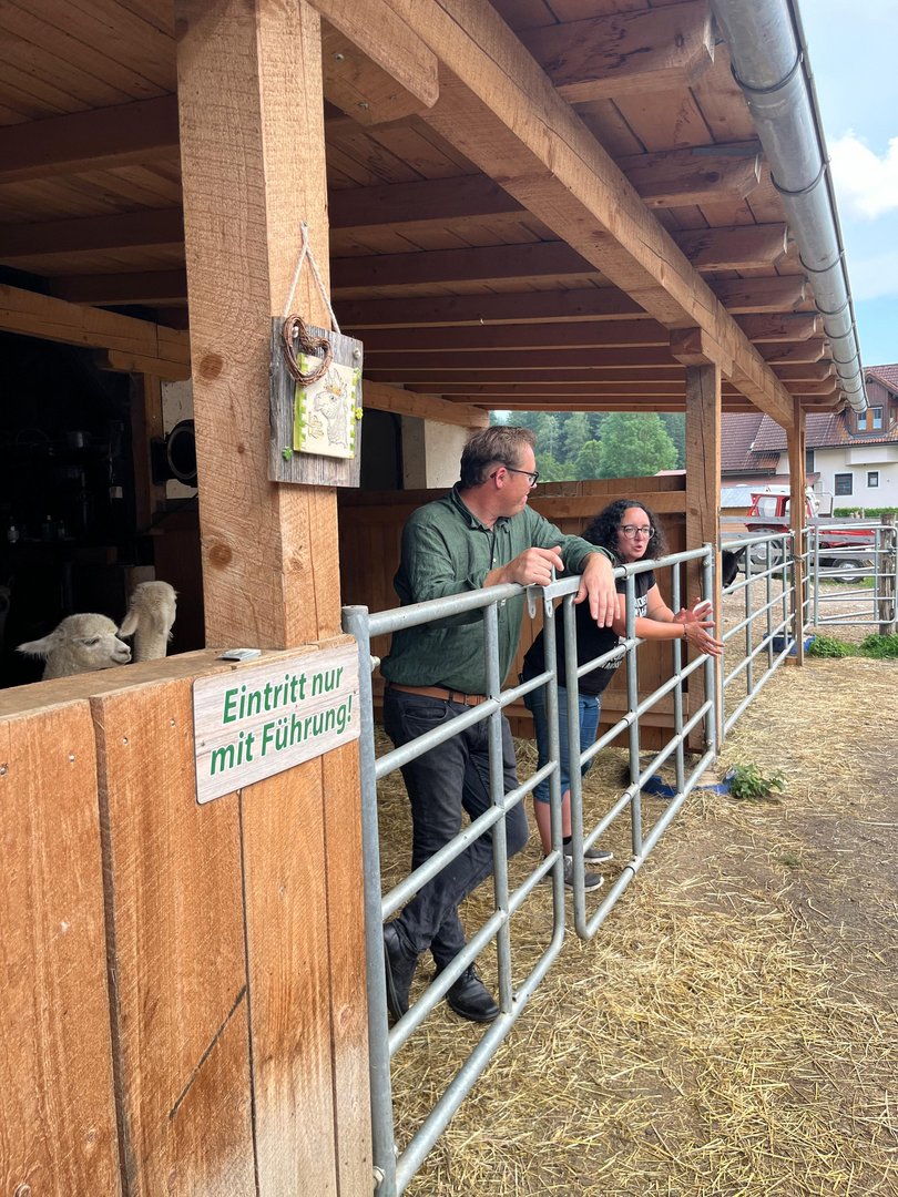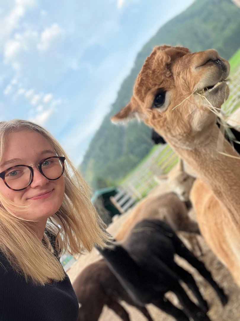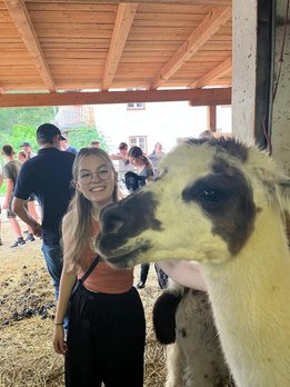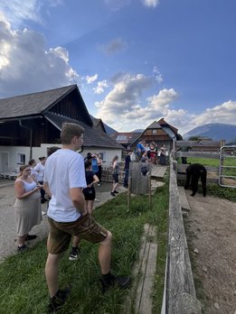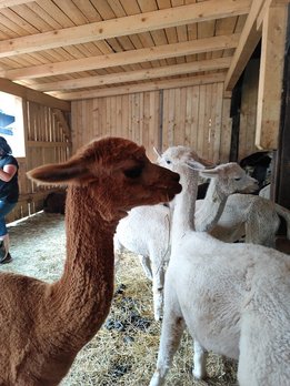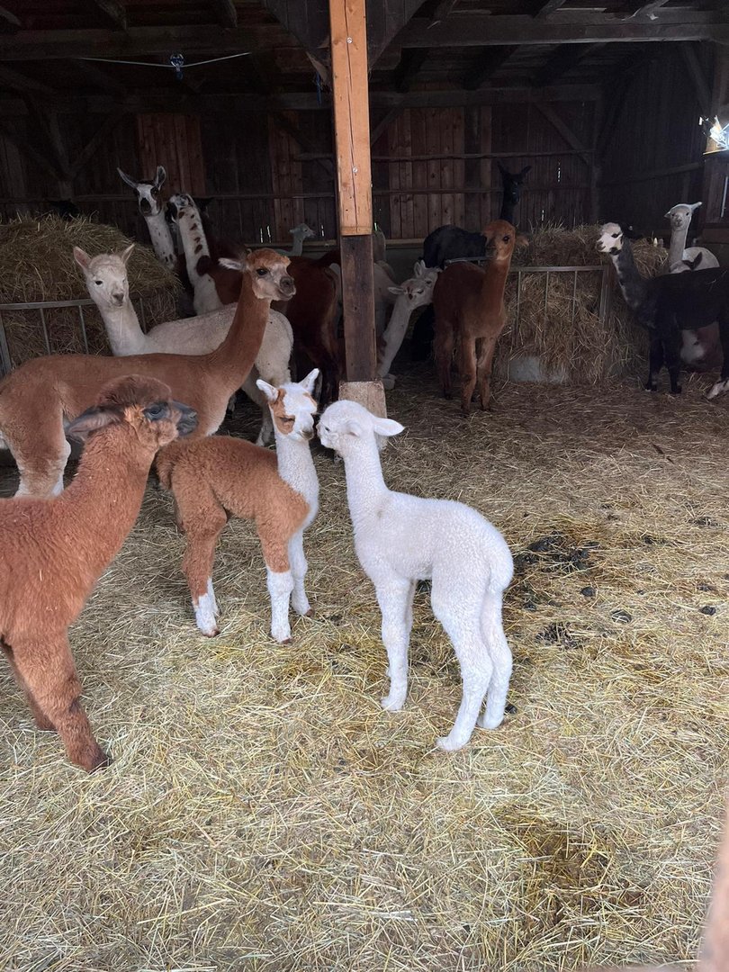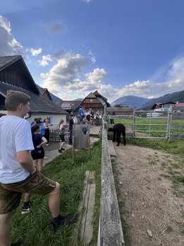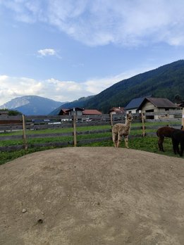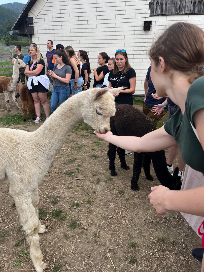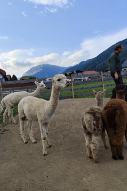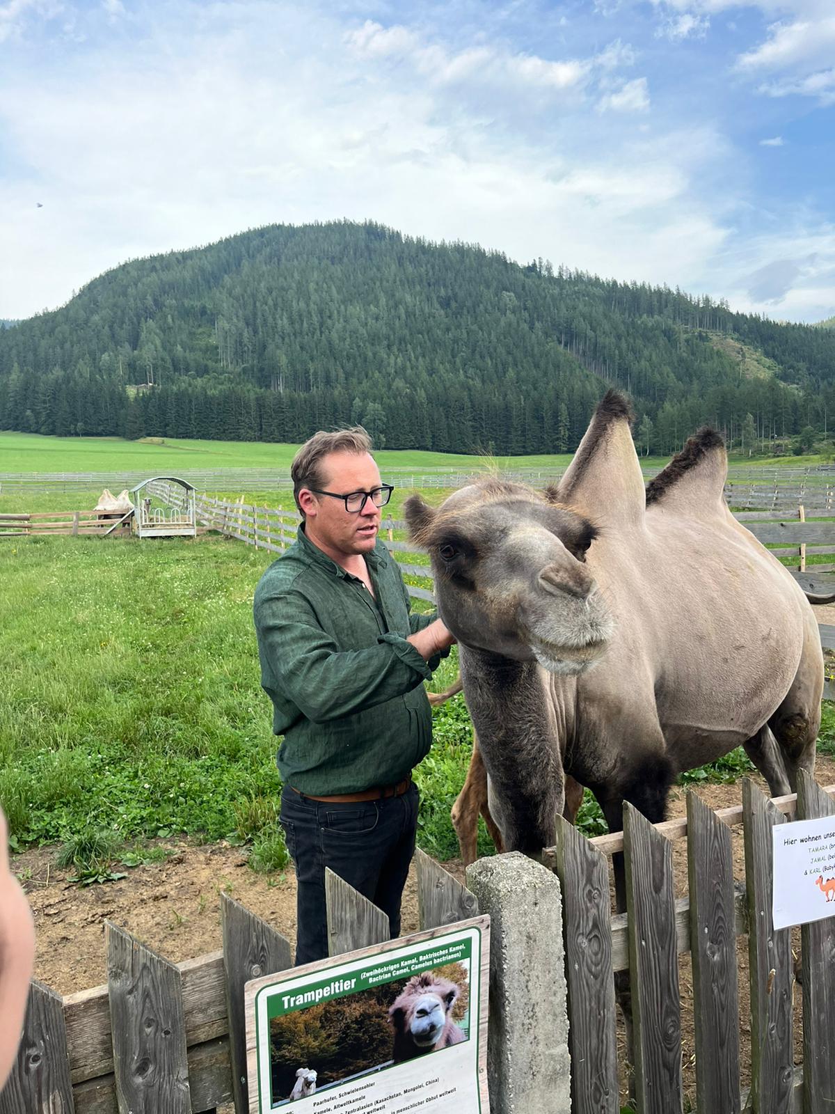 Am Dienstag, dem. 9. Juli, besichtigten 30 Landjugend-Mitglieder aus den Bezirken Bruck/Mur, Mürzzuschlag und Leoben den Pattererhof der Familie Friedam/Kaufmann in Tragöß. Zu besichtigen gab es dort so einiges. Angefangen mit 3 Kamelen, davon ein noch sehr junges Trampeltier namens Karl. Auch die zwei Hängebauchschweine haben sich bei unserem Besuch zeigen lassen. Weiter ging es dann auch sofort in den Stall der Alpakas und Lamas. Um die 50 Tiere tummelten sich im Stall herum und wir durften die Stuten füttern. Ein weiteres großes Highlight war auf jedenfall der kurze Spaziergang zu den zwei Rentieren. Cupid und Comet zeigten sich in ihrer vollen Pracht und hatten ebenfalls keine Scheu vor Besuchern. Zum Abschluss durften wir die männlichen Alpakas mit Streicheleinheiten verwöhnen.
