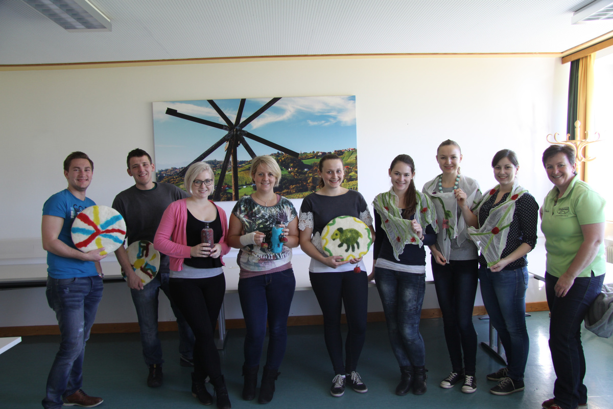 Traditionellerweise stand das zweite Novemberwochenende ganz im Zeichen der Bildung. Das Bildungswochenende der Landjugend Steiermark ging über die Bühne. Insgesamt 84 Landjugendliche aus dem ganzen Land besuchten die 16 Kurse. Darunter auch 12 VertreterInnen des LJ-Bezirks Bruck/Mur. Wer die Wahl hat, hat bekanntlich die Qual. So erging es auch den TeilnehmerInnen des Bildungswochenendes. Ihnen standen verschiedene persönlichkeitsbildende Kurse von Mediation und Rhetorik für Fortgeschrittene über Smalltalk in English und Moderationstechniken, Gedächtnistraining und Selbstcoaching bis hin zu Modul III und IV der 4-gewinnt-Reihe zur Auswahl. Am Samstagabend ging es mit Discofox für Fortgeschrittene, alkoholfreien Cocktails und Volkslieder singen lustig zu. Farb- und Typberatung, Filzen, Knigge, Selbstverteidigung und Guatemaltekische Küche standen dann am Sonntag am Programm. Allgemeinbildung ist einer der wichtigsten Schwerpunkt der Landjugend. Die persönliche Weiterentwicklung steht dabei im Vordergrund. Wenn dabei auch noch der Spaß nicht zu kurz kommt, ist die Mischung perfekt :-)