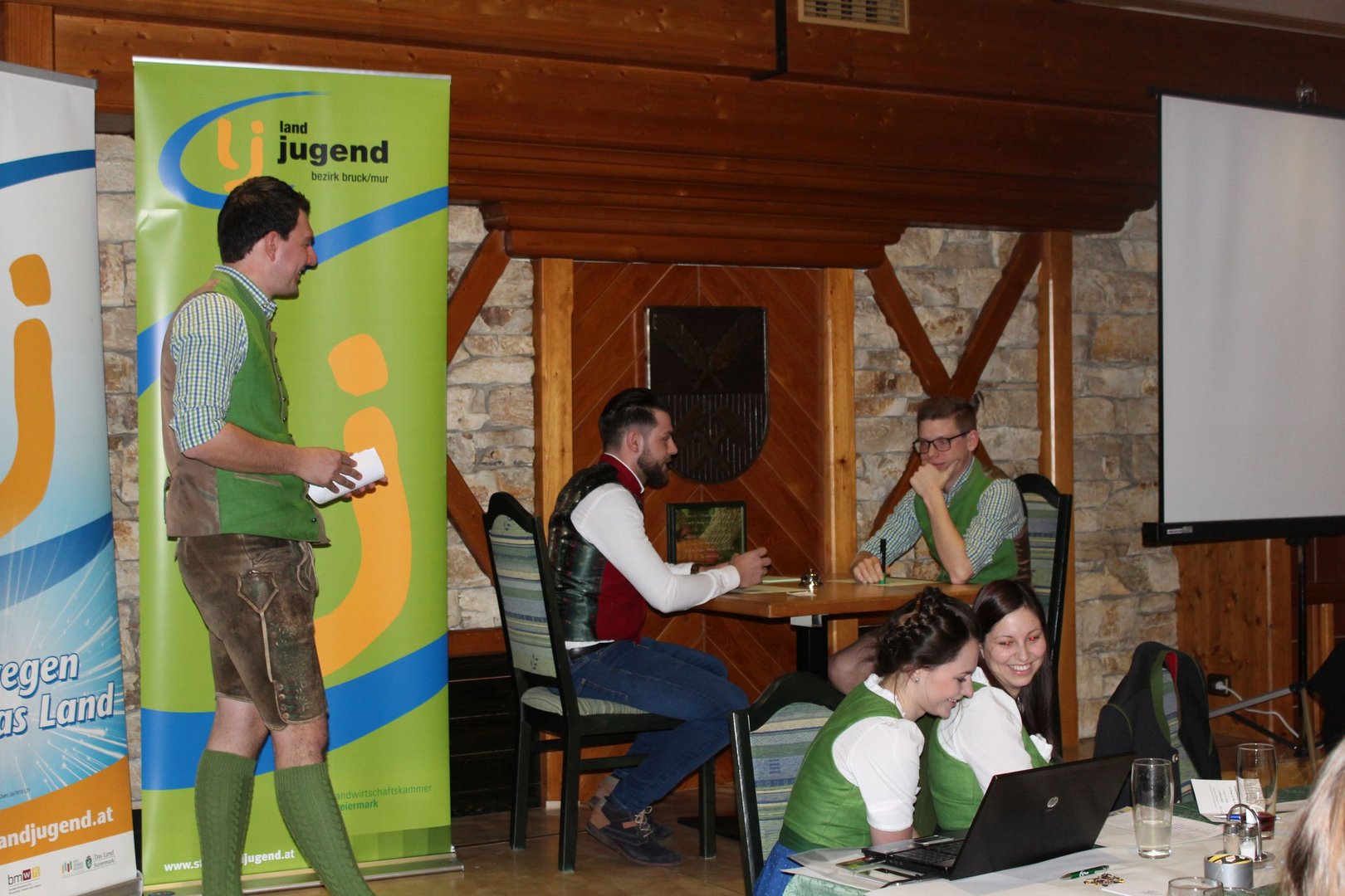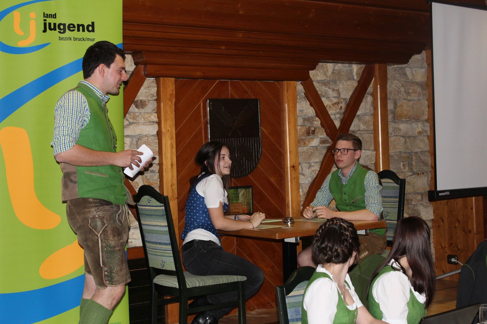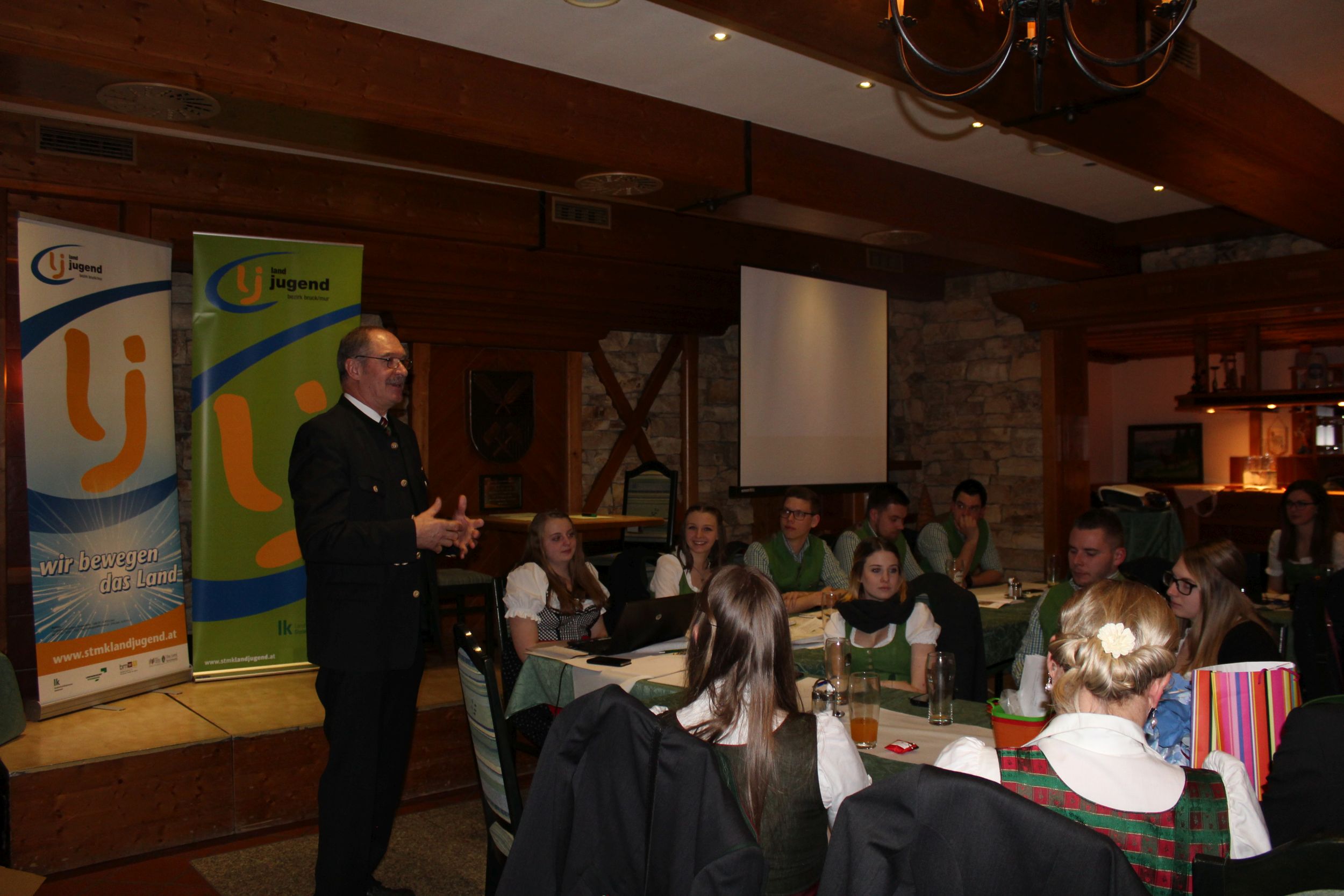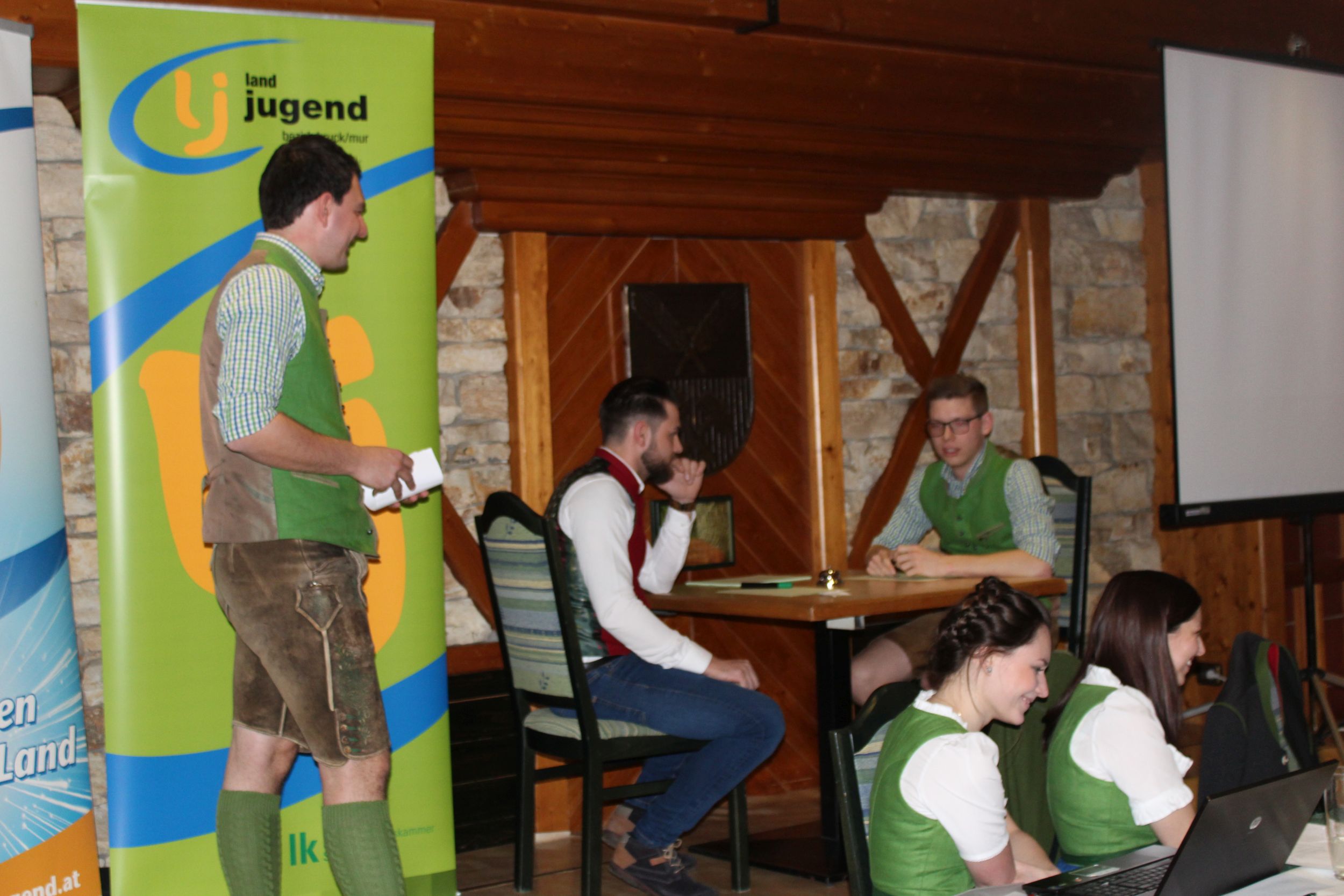 Am 16.03. fand im Gasthaus Görgl die 69. Generalversammlung der Landjugend Bezirk Bruck/ Mur statt. Rund 70 Gäste aus anderen Ortsgruppen und Bezirken folgten der Einladung. Als Ehrengäste durften wir Vertreter der Gemeinde Kapfenberg begrüßen, Christopher Till und Mathias Jentner. Außerdem freuten wir uns über den Besuch von Kammerobman ÖR Johann Madertoner und Gemeindebauernobmann Franz Sonnleitner. Auch der Landesvorstand war mit Andreas Bischof, Katharina Muhr und Stefan Sonnleitner anwesend. Nach der Begrüßung durch Obmann und Leiterin wurde der Tätigkeitsbericht des letzten Jahres präsentiert. Hier ließen wir uns etwas ganz Besonderes einfallen, denn immerhin soll doch auch das Publikum in das Gesamtgeschehnis eingebunden werden. Jeder Gast, der einen Zettel unter seinem Sessel kleben hatte wurde in den Tätigkeitsbericht mit einem der Landjugend-Schwerpunkte eingebunden. Anhand eines Quiz wurden den jeweiligen Glückskindern Fragen gestellt. Als großer Gegner saß ihnen Bezirksobmann Manuel Repolusk gegenüber. Nach den Fragen wurde immer ein Video mit den gesamten Tätigkeiten in diesem Schwerpunkt im letzten Jahr eingespielt. Nach dem spaßigem, ausführlichen Tätigkeitsbericht wurde es etwas ernster, denn der Kassabericht stand am Programm. Und somit wurde das letzte Jahr abgeschlossen und man ging zur Zukunft über – die Ergänzungswahlen des Bezirksvorstandes standen an. Mit frischem, jungen Schwung freuen wir uns mit diesen Funktionären auf das kommende LJ – Jahr: