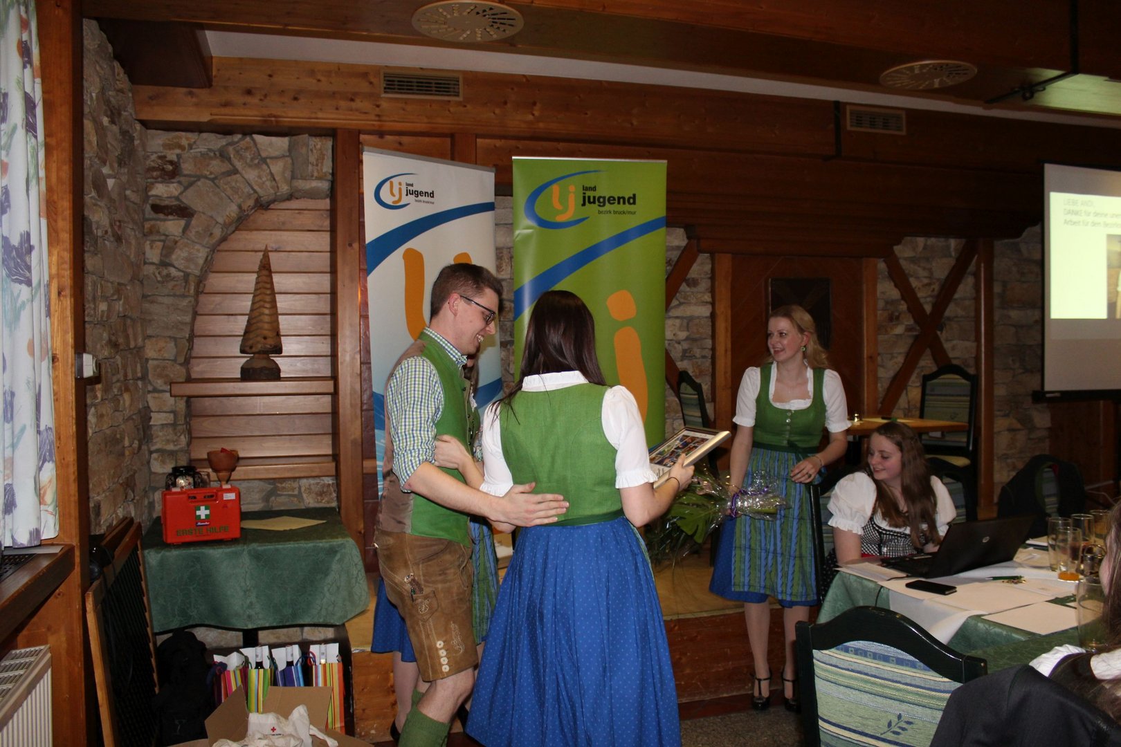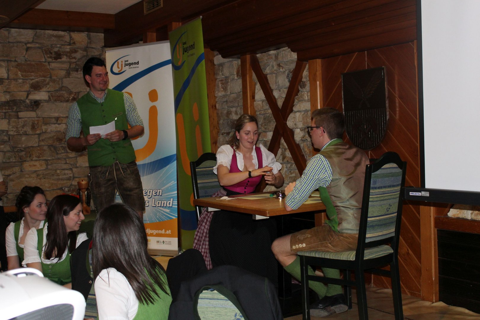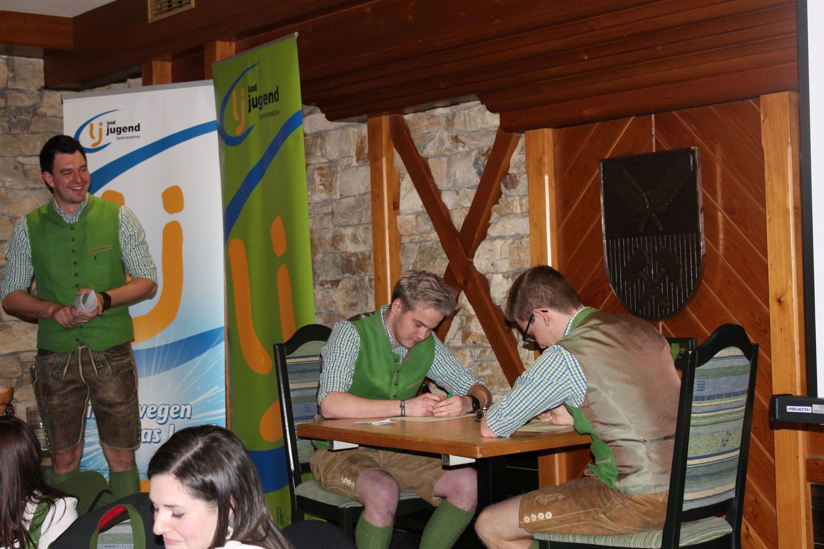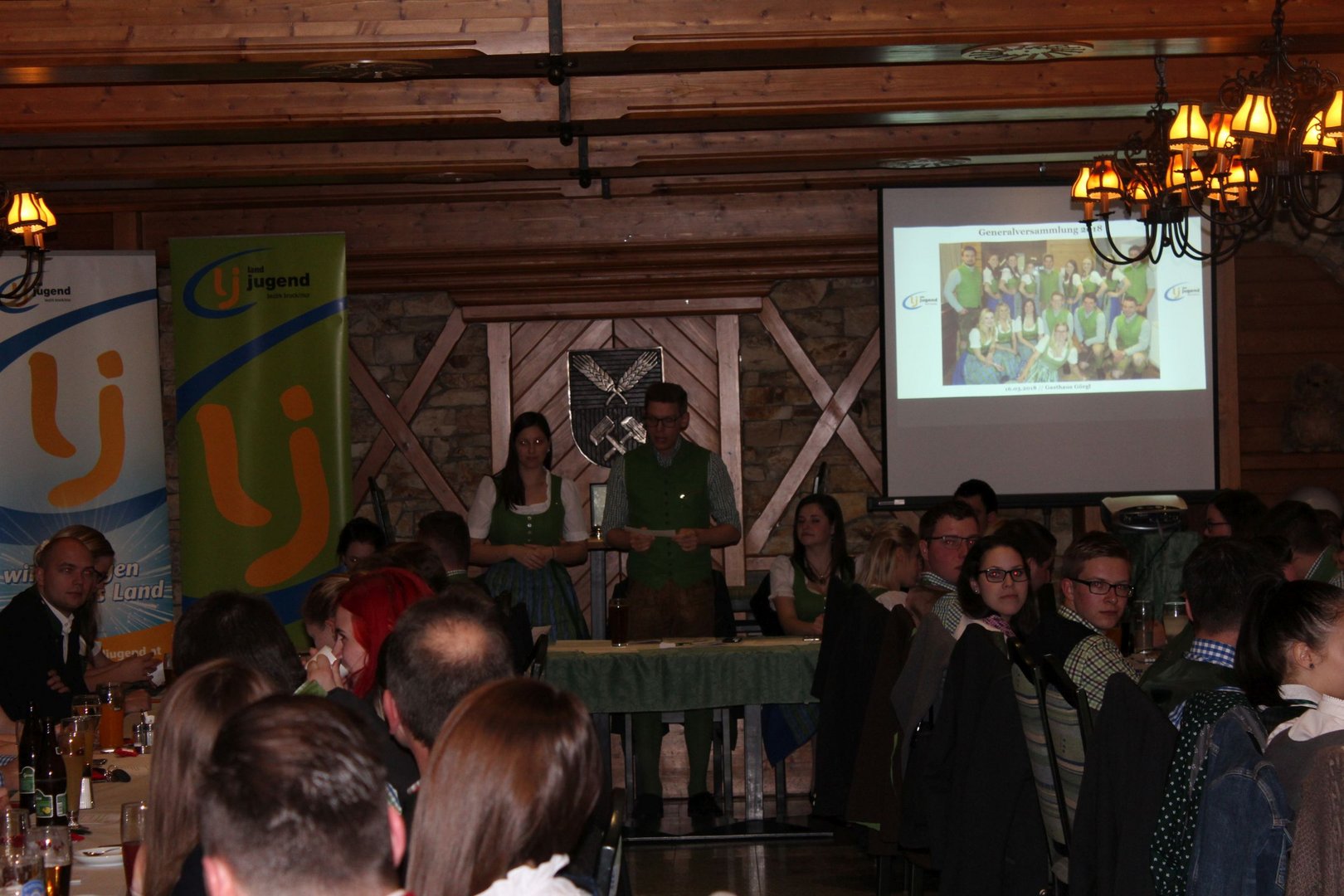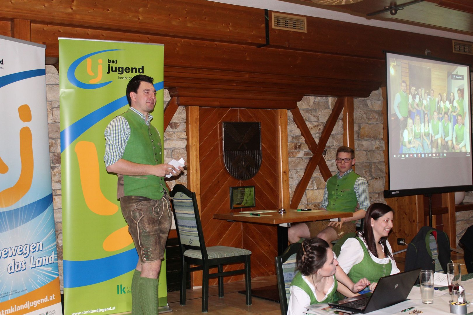 Am 16.03. fand im Gasthaus Görgl die 69. Generalversammlung der Landjugend Bezirk Bruck/ Mur statt. Rund 70 Gäste aus anderen Ortsgruppen und Bezirken folgten der Einladung. Als Ehrengäste durften wir Vertreter der Gemeinde Kapfenberg begrüßen, Christopher Till und Mathias Jentner. Außerdem freuten wir uns über den Besuch von Kammerobman ÖR Johann Madertoner und Gemeindebauernobmann Franz Sonnleitner. Auch der Landesvorstand war mit Andreas Bischof, Katharina Muhr und Stefan Sonnleitner anwesend. Nach der Begrüßung durch Obmann und Leiterin wurde der Tätigkeitsbericht des letzten Jahres präsentiert. Hier ließen wir uns etwas ganz Besonderes einfallen, denn immerhin soll doch auch das Publikum in das Gesamtgeschehnis eingebunden werden. Jeder Gast, der einen Zettel unter seinem Sessel kleben hatte wurde in den Tätigkeitsbericht mit einem der Landjugend-Schwerpunkte eingebunden. Anhand eines Quiz wurden den jeweiligen Glückskindern Fragen gestellt. Als großer Gegner saß ihnen Bezirksobmann Manuel Repolusk gegenüber. Nach den Fragen wurde immer ein Video mit den gesamten Tätigkeiten in diesem Schwerpunkt im letzten Jahr eingespielt. Nach dem spaßigem, ausführlichen Tätigkeitsbericht wurde es etwas ernster, denn der Kassabericht stand am Programm. Und somit wurde das letzte Jahr abgeschlossen und man ging zur Zukunft über – die Ergänzungswahlen des Bezirksvorstandes standen an. Mit frischem, jungen Schwung freuen wir uns mit diesen Funktionären auf das kommende LJ – Jahr: