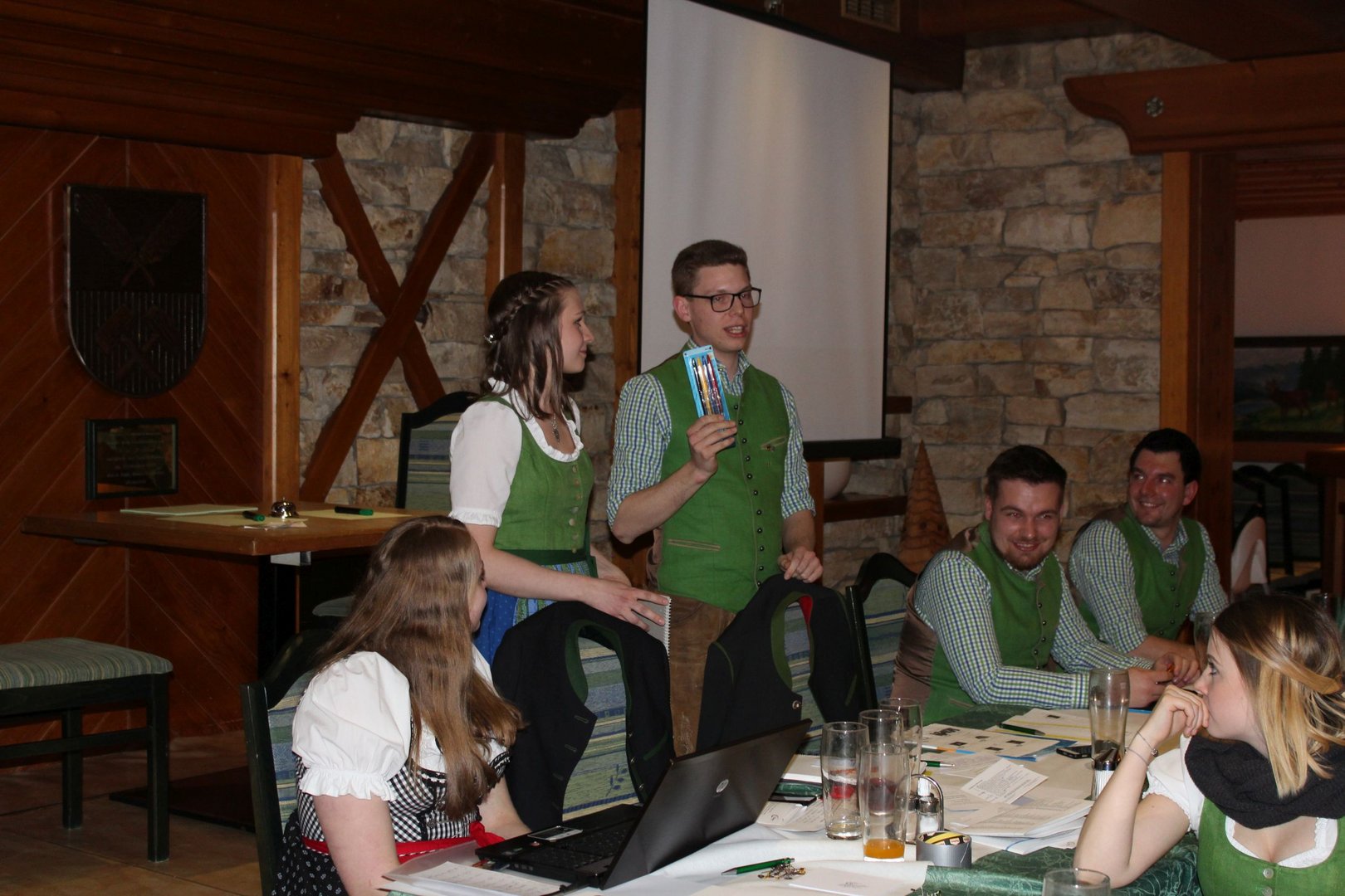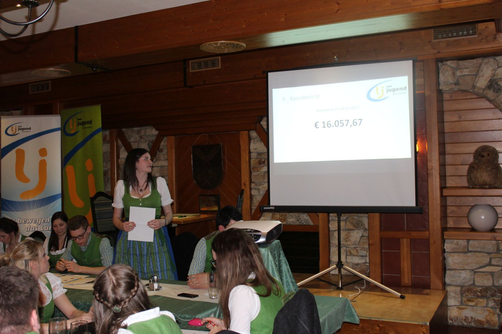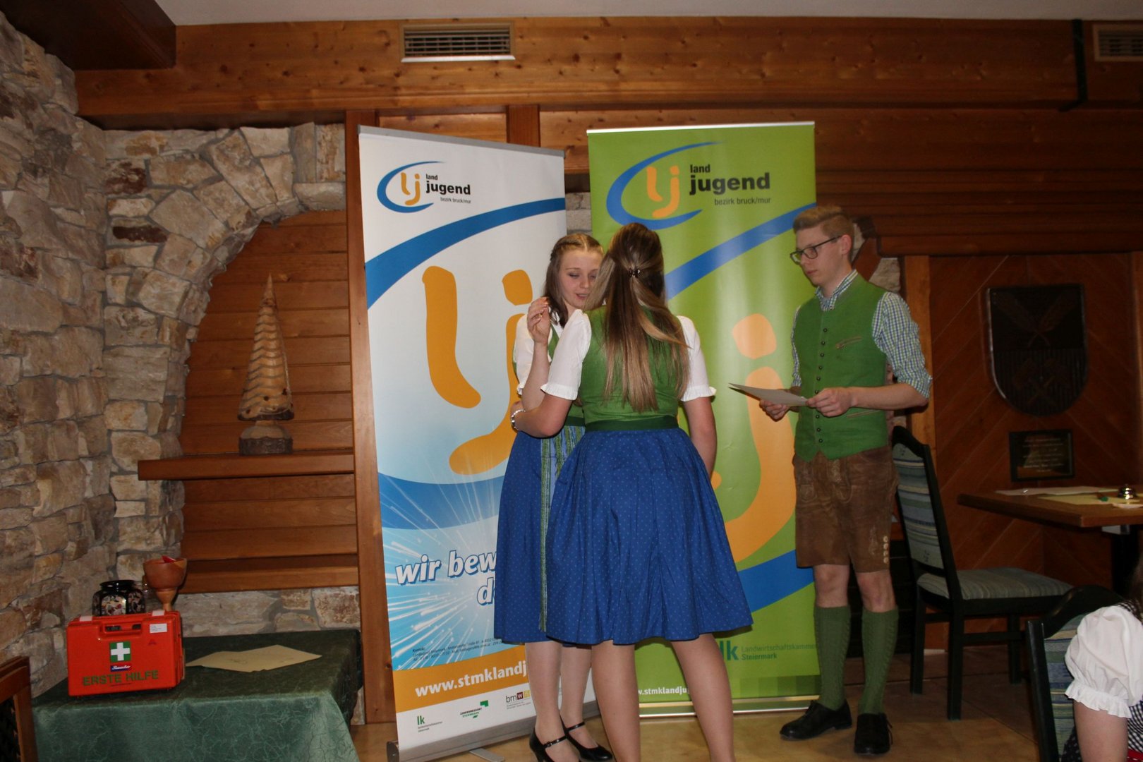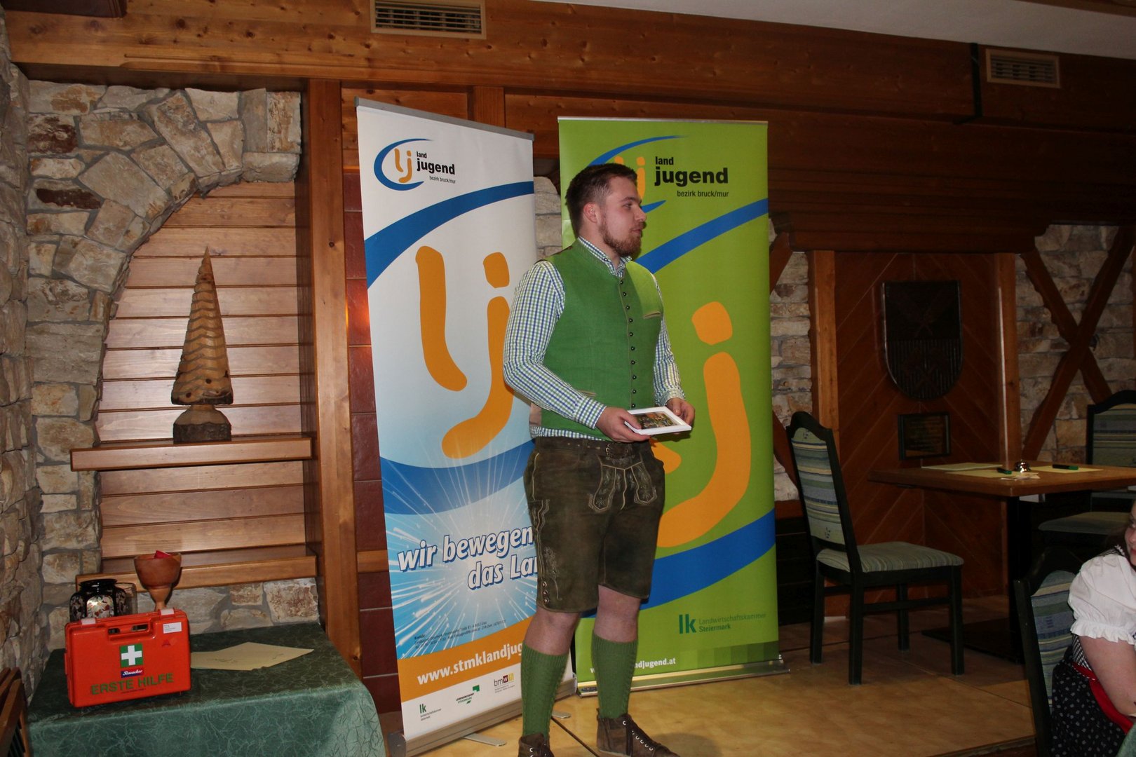 Am 16.03. fand im Gasthaus Görgl die 69. Generalversammlung der Landjugend Bezirk Bruck/ Mur statt. Rund 70 Gäste aus anderen Ortsgruppen und Bezirken folgten der Einladung. Als Ehrengäste durften wir Vertreter der Gemeinde Kapfenberg begrüßen, Christopher Till und Mathias Jentner. Außerdem freuten wir uns über den Besuch von Kammerobman ÖR Johann Madertoner und Gemeindebauernobmann Franz Sonnleitner. Auch der Landesvorstand war mit Andreas Bischof, Katharina Muhr und Stefan Sonnleitner anwesend. Nach der Begrüßung durch Obmann und Leiterin wurde der Tätigkeitsbericht des letzten Jahres präsentiert. Hier ließen wir uns etwas ganz Besonderes einfallen, denn immerhin soll doch auch das Publikum in das Gesamtgeschehnis eingebunden werden. Jeder Gast, der einen Zettel unter seinem Sessel kleben hatte wurde in den Tätigkeitsbericht mit einem der Landjugend-Schwerpunkte eingebunden. Anhand eines Quiz wurden den jeweiligen Glückskindern Fragen gestellt. Als großer Gegner saß ihnen Bezirksobmann Manuel Repolusk gegenüber. Nach den Fragen wurde immer ein Video mit den gesamten Tätigkeiten in diesem Schwerpunkt im letzten Jahr eingespielt. Nach dem spaßigem, ausführlichen Tätigkeitsbericht wurde es etwas ernster, denn der Kassabericht stand am Programm. Und somit wurde das letzte Jahr abgeschlossen und man ging zur Zukunft über – die Ergänzungswahlen des Bezirksvorstandes standen an. Mit frischem, jungen Schwung freuen wir uns mit diesen Funktionären auf das kommende LJ – Jahr: