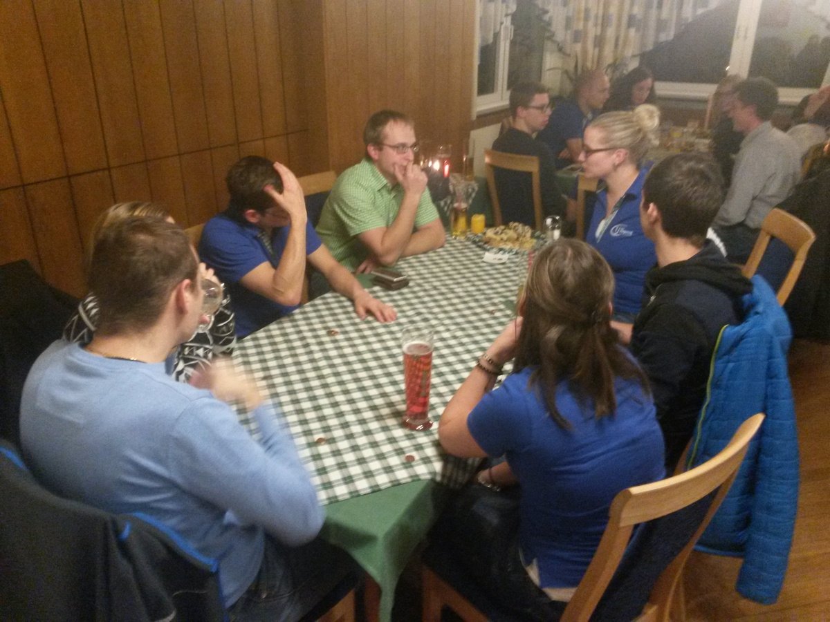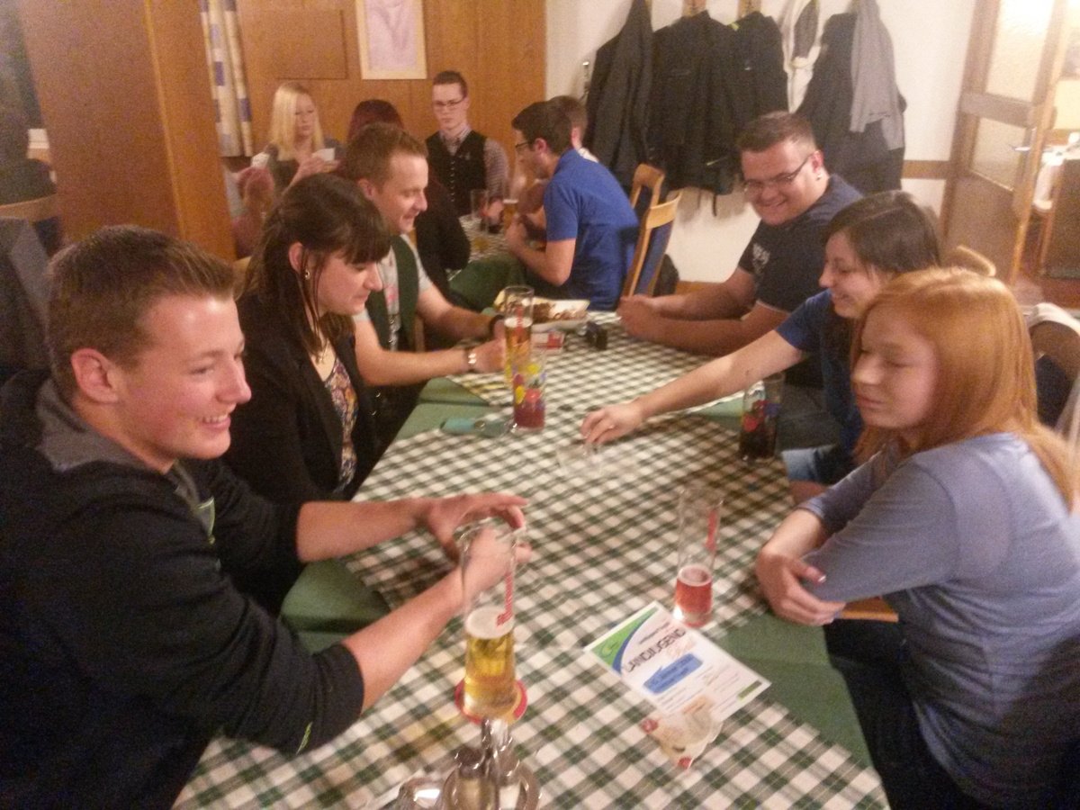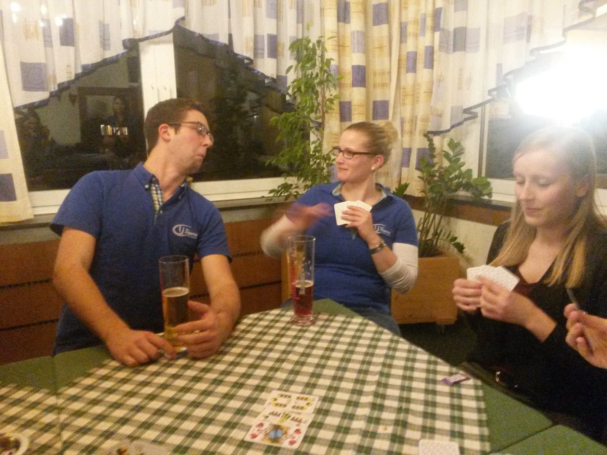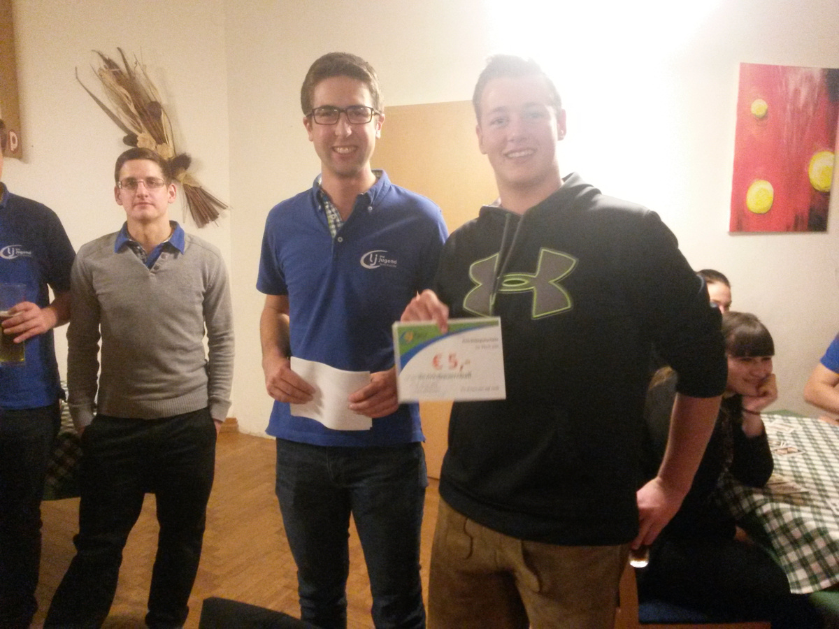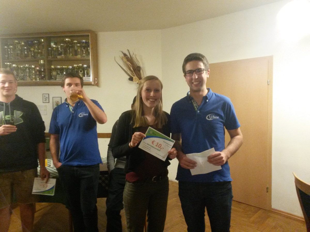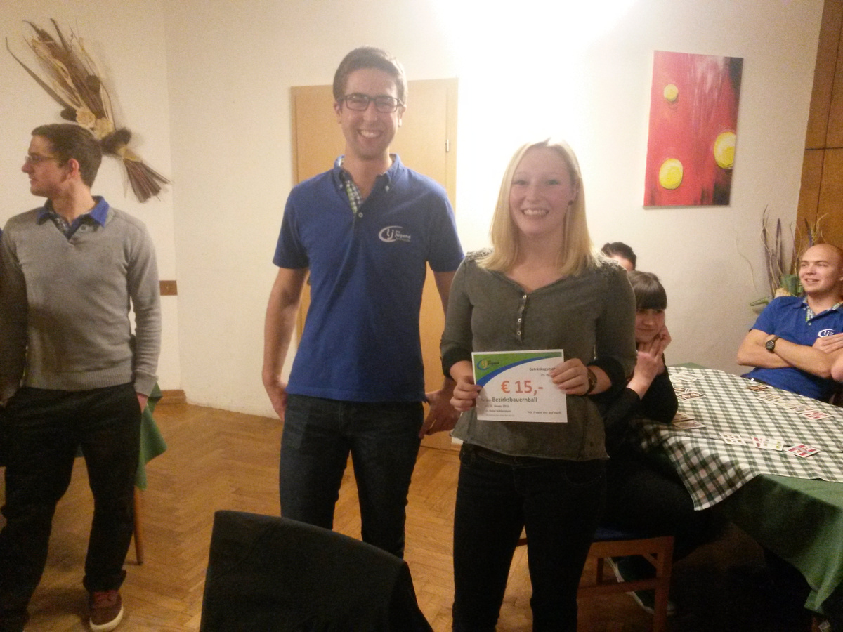 Nach einigen leckeren Wildspezialitäten im Gasthaus Puregger in Turnau wurden die Regeln für ein faires Spiel festgelegt, unsere LJ-Mitglieder in sechs Gruppen geteilt, und der Spaß ging auch schon los. In den sechs Gruppen kämpften die Hos'n owi Spieler um das Weiterkommen in die nächste Runde. Zwei der sechs Mitspieler stiegen jeweils in das Halbfinale auf. Dort konnten sich dann jeweils drei Halbfinalisten für das Finale qualifizieren. Die sechs Finalsten lieferten sich ein knappes Rennen um die begehrten Preise - Getränkegutscheine für unseren Bezirksbauernball am 15. Jänner. Lustigerweise konnte sich unsere Bezirksleiterin Andrea Schönfelder vor unserer Bezirksbetreuerin Elisabeth Weber durchsetzen. ;) Die Getränkegutscheine gingen an Anna Perl aus der LJ Etmißl, Christina Krenn aus der LJ Aflenz und Marco Zerner aus der LJ St. Katharein. Gratulation an alle Gewinner!! Danke für diesen tollen Bezirkstreff, und die zahlreiche Teilnahme unserer Mitglieder! Wir hoffen, nicht nur die Gutschein-Gewinner beim Bezirksbauernball zu treffen - Wir freuen uns auf EUCH! :D