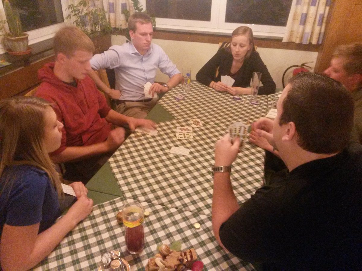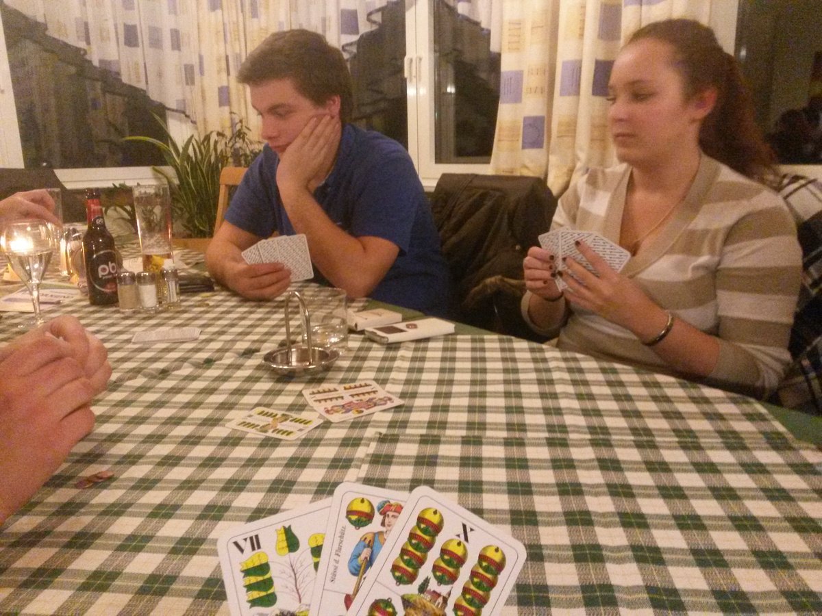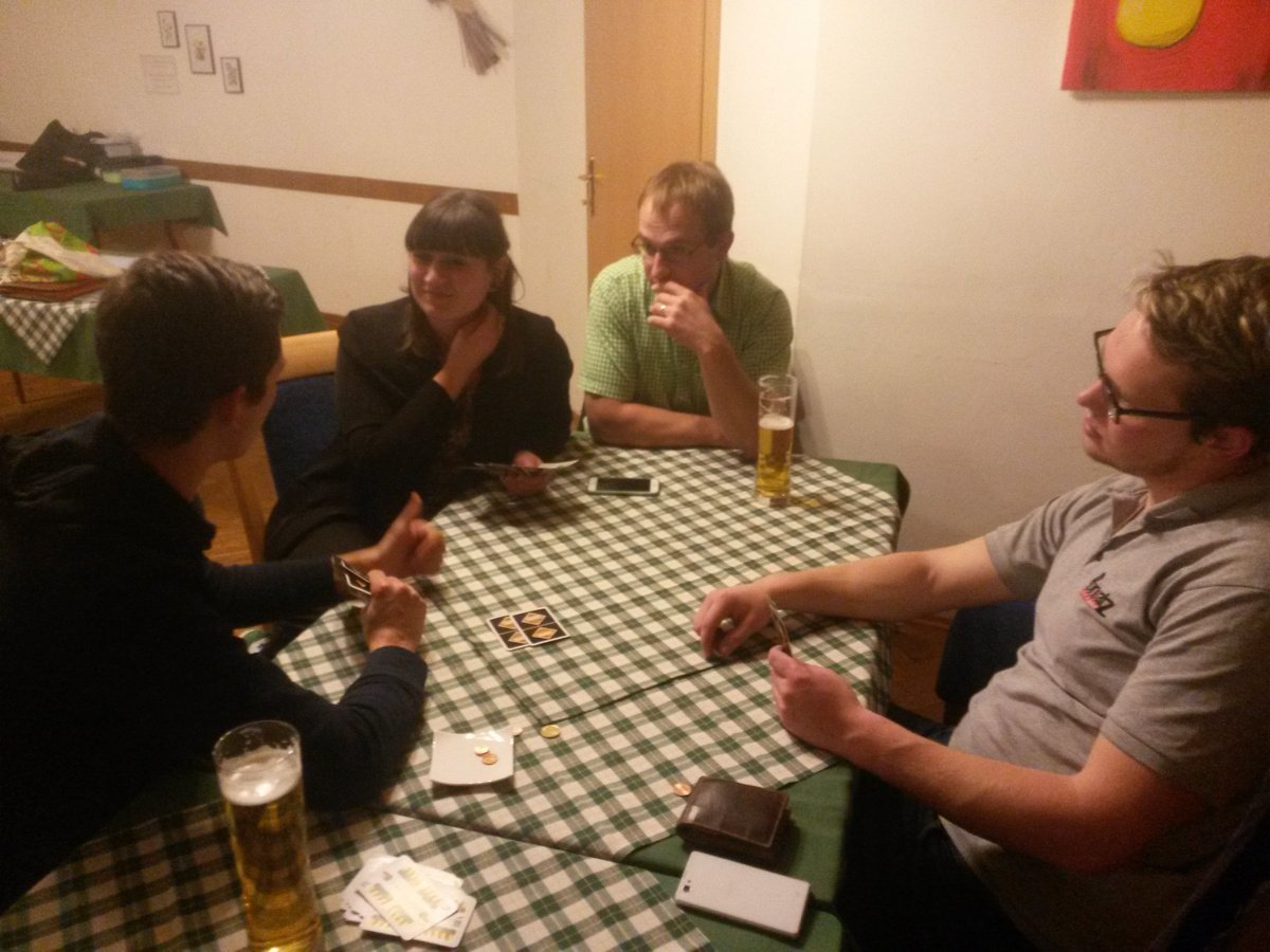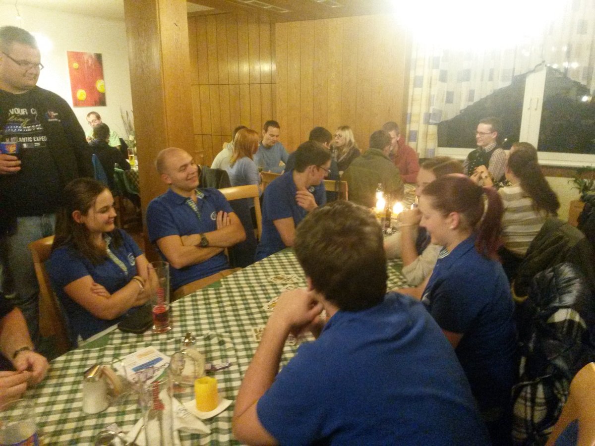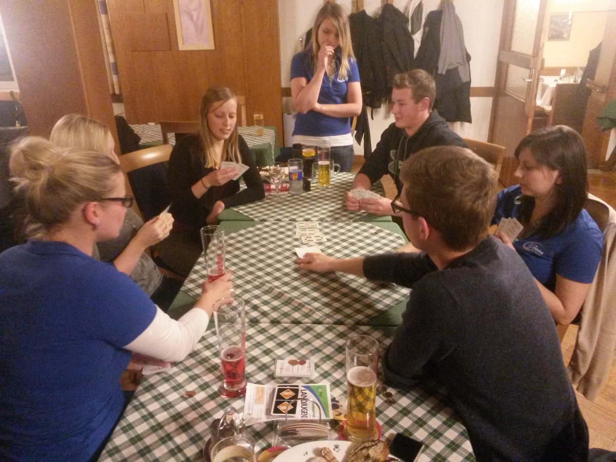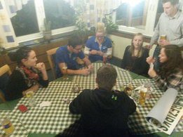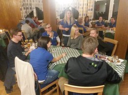 Nach einigen leckeren Wildspezialitäten im Gasthaus Puregger in Turnau wurden die Regeln für ein faires Spiel festgelegt, unsere LJ-Mitglieder in sechs Gruppen geteilt, und der Spaß ging auch schon los. In den sechs Gruppen kämpften die Hos'n owi Spieler um das Weiterkommen in die nächste Runde. Zwei der sechs Mitspieler stiegen jeweils in das Halbfinale auf. Dort konnten sich dann jeweils drei Halbfinalisten für das Finale qualifizieren. Die sechs Finalsten lieferten sich ein knappes Rennen um die begehrten Preise - Getränkegutscheine für unseren Bezirksbauernball am 15. Jänner. Lustigerweise konnte sich unsere Bezirksleiterin Andrea Schönfelder vor unserer Bezirksbetreuerin Elisabeth Weber durchsetzen. ;) Die Getränkegutscheine gingen an Anna Perl aus der LJ Etmißl, Christina Krenn aus der LJ Aflenz und Marco Zerner aus der LJ St. Katharein. Gratulation an alle Gewinner!! Danke für diesen tollen Bezirkstreff, und die zahlreiche Teilnahme unserer Mitglieder! Wir hoffen, nicht nur die Gutschein-Gewinner beim Bezirksbauernball zu treffen - Wir freuen uns auf EUCH! :D