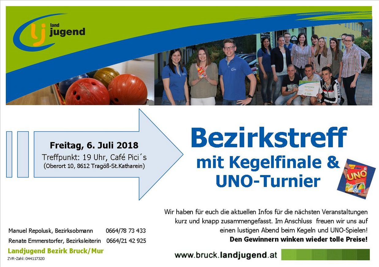 Der Bezirkstreff mit dem Kegelfinale steht vor der Tür. Natürlich findet auch wieder das UNO-Turnier statt. Neben den Turnieren habt ihr an diesem Abend die Chance, euch die wichtigsten aktuellen Infos zu den nächsten Veranstaltungen zu holen. Also seid dabei! Wir freuen uns auf euer Kommen!
