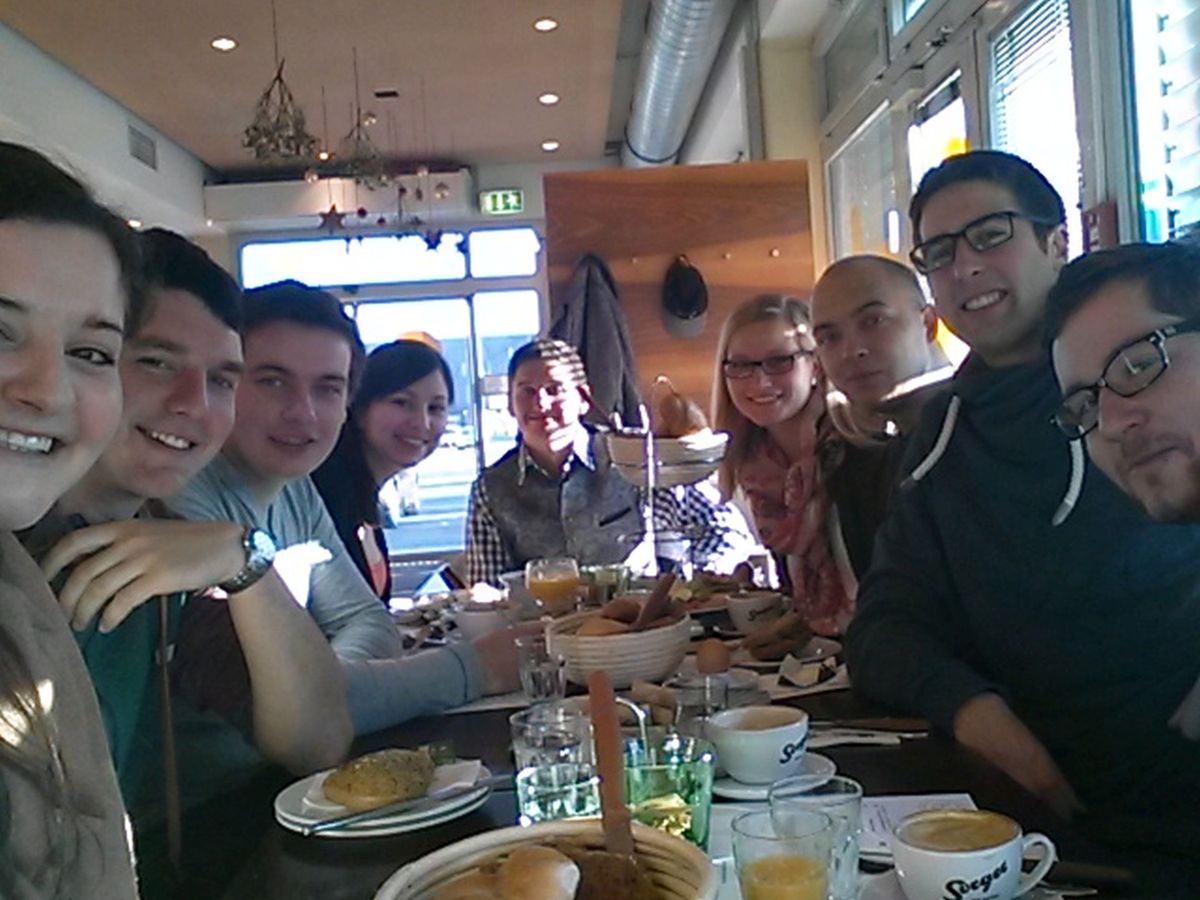 Der erste Weg, nachdem alle Mitfahrenden mit zwei Autos aufgegabelt wurden, führte uns zum Sorger in St. Lorenzen im Mürztal. Um richtig aufzuwachen gönnten wir uns ein tolles Frühstück, bei dem keine Wünsche offen blieben - von Toast über Rührei bis hin zum traditionellen Aufschnitt war für jeden etwas dabei!