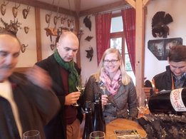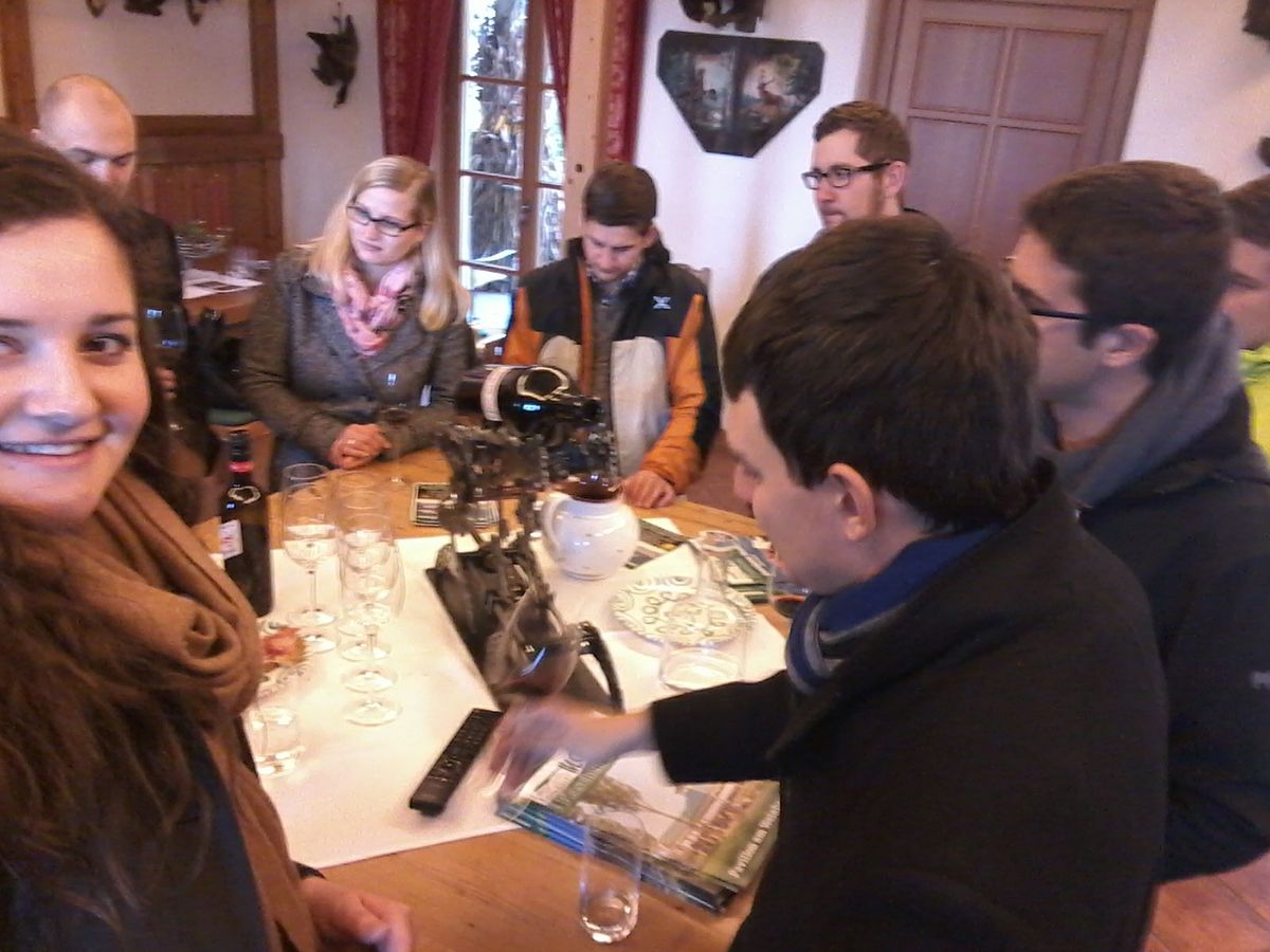 Eine 15-minütige Autofahrt später standen wir vor einem wahren Schloss, dem Weingut Thaller in Großwilfersdorf. Karl Thaller, der Chef persönlich, führte uns durch die wunderschöne Anlage, in der auch sehr viele Hochzeiten und andere Events stattfinden. Für die Steiermark recht untypisch, produziert die Familie Thaller 70% Rotwein. Im Zuge der Führung erfuhren wir viel über die große Familie. Auch die sechs Kinder helfen fleißig am Betrieb mit. Uns wurde außerdem die Hauskapelle, der Glockenturm und der Barriquekeller gezeigt. Nach der interessanten Tour wartete eine Weinverkostung auf uns, bei der wir sechs hauseigene Weine probieren durften. Am Weingut gibt es auch eine eigene Buschenschank, in der zum Abschluss eine hervorragende Jause darauf wartete, von uns verspeißt zu werden.