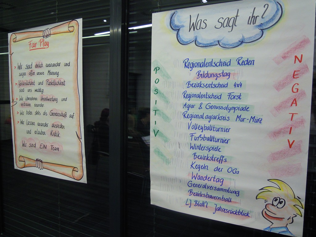 Keine Pause gibt es in der LJ-Arbeit. Ein äußerst erfolgreiches Jahr liegt hinter uns - ein noch erfolgreicheres soll starten. Dieses Vorhaben braucht motivierte Mitglieder, noch motiviertere Funktionäre und zu guter Letzt ein tolles Programm. Dafür galt es am vergangenen Wochenende die Köpfe zusammen zu stecken und in zahlreichen Stunden den Jahresplan für das kommende LJ-Jahr auf die Beine zu stellen. Gleich im Anschluss an den Bezirksentscheid 4x4 startete der Bezirksvorstand in den heiligen Hallen der Bezirkskammer Obersteiermark mit der Klausur. Am Klausurplan stand neben der Jahresplanung auch vieles an allgemeinen Grundlagen für die Vorstandsarbeit: Wir fixierten die Regeln für unsere Zusammenarbeit im BV-Team, besprachen die Kommunikation innerhalb des BVs und nach außen hin, regelten die Ortsgruppenbetreuung und widmeten uns intensiv der Evaluierung des letzten LJ-Jahres.