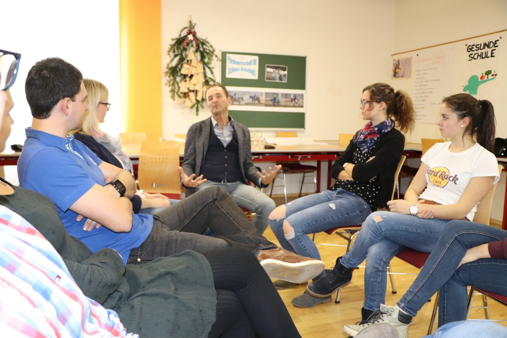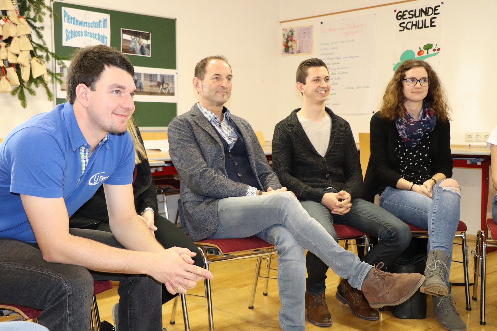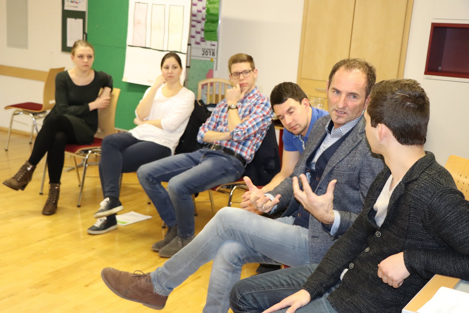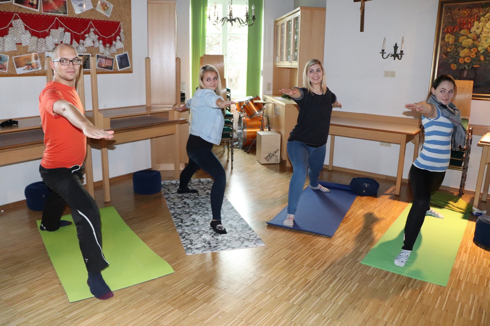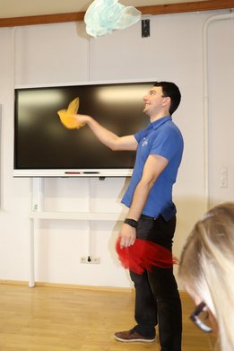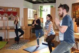 Das diesjährige Programm beim Bildungstag war kunterbunt und vielfältig, aus diesem Grund lockte es auch einige interessierte Ortsgruppenmitglieder an. Im ersten Kurs mit Trainerlegende Josef Moser wurde das Thema Auftreten & Ausstrahlung behandelt. Es wurde mit einer ausgedehnten Vorstellungsrunde mit Analyse jeder einzelnen Person angefangen. Dabei stellten wir uns die Frage: Wie sehe ich mich und wie sehen die anderen mich? Ein wenig Rhetorik-Grundkenntnisse wie der hüftbreite Stand, der Augenkontakt, die Haltung der Hände und das Lampenfieber wurden unter die Lupe genommen und gleich in die Praxis umgesetzt. Darüber hinaus lernten wir bei wem welche Gehirnhälfte besser ausgeprägt ist und eines der Highlights: Jeder der Teilnehmer lernte an diesem Tag Jonglieren. Außerdem erhielten wir noch eine Farb- und Typberatung und durften die Stile jedes einzelnen genauestens inspizieren. Der krönende Abschluss des Ganztages-Kurses war aber auf jeden Fall die Feedback-Runde, wo jeder Teilnehmer, jedem anderen Teilnehmer ein Feedback über Auftreten/ Ausstrahlung und Selbstvertrauen geben durfte. Denn dieser „warme Regen“ war für einige ein erneuter Motivationsschub. Der andere Kurs gliederte sich in einen Vormittags- und einen Nachmittagskurs. Am Vormittag wurde Steirisch geburgert. Seminarbäurin Elfriede Wöls zeigte den Landjugendlichen neue Ideen und kreative Rezepte rund um den Burger. Davon überzeugten sich dann alle Teilnehmer beim gemeinsamen Mittagessen und der Kostprobe der leckeren Speisen. Wobei auch das Dessert eines der Highlights der Mahlzeit darstellte: Topfensoufflè im Bratapfel – wer kann hier schon widerstehen? Und am Nachmittag galt es, sich eine Auszeit vom Alltag zu nehmen. Bei Yoga, Mediation und Qi Gong mit Yogalehrerin Conny Neukamp wurden alle wichtigen Gedanken ausgeblendet und nur die Entspannung stand im Vordergrund.