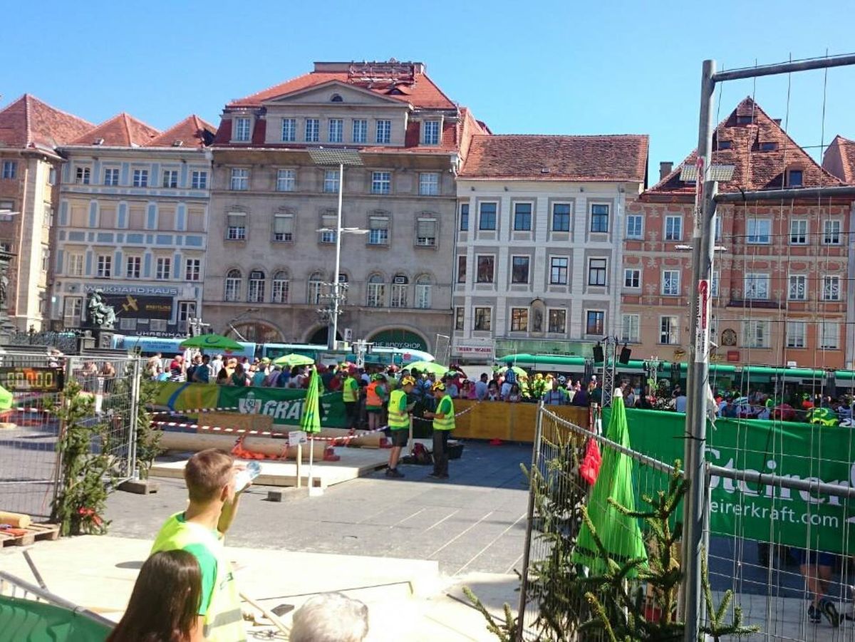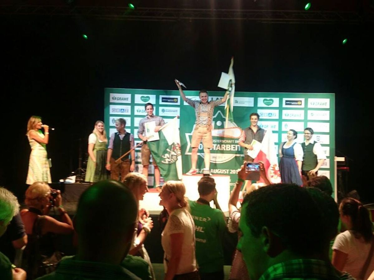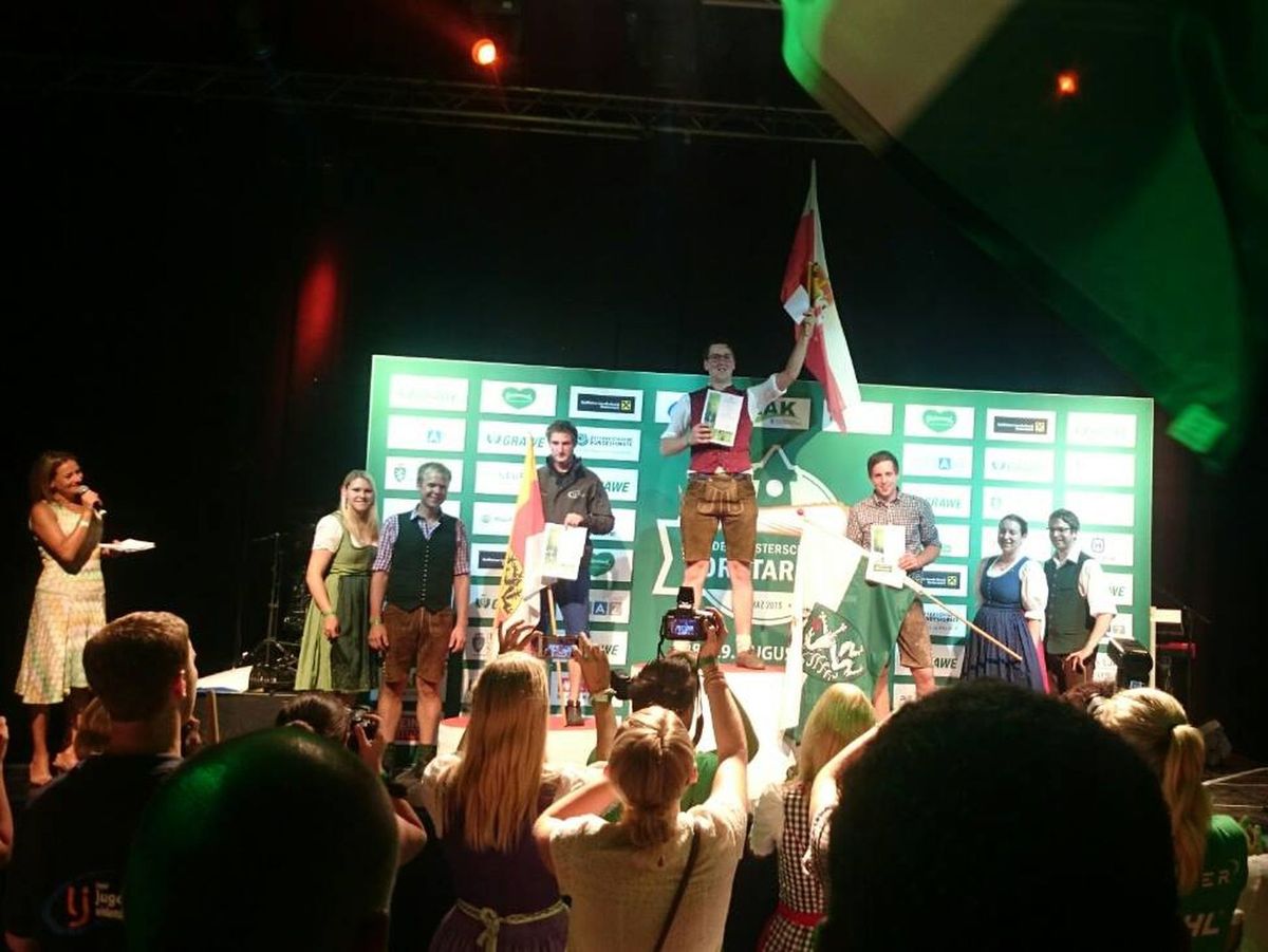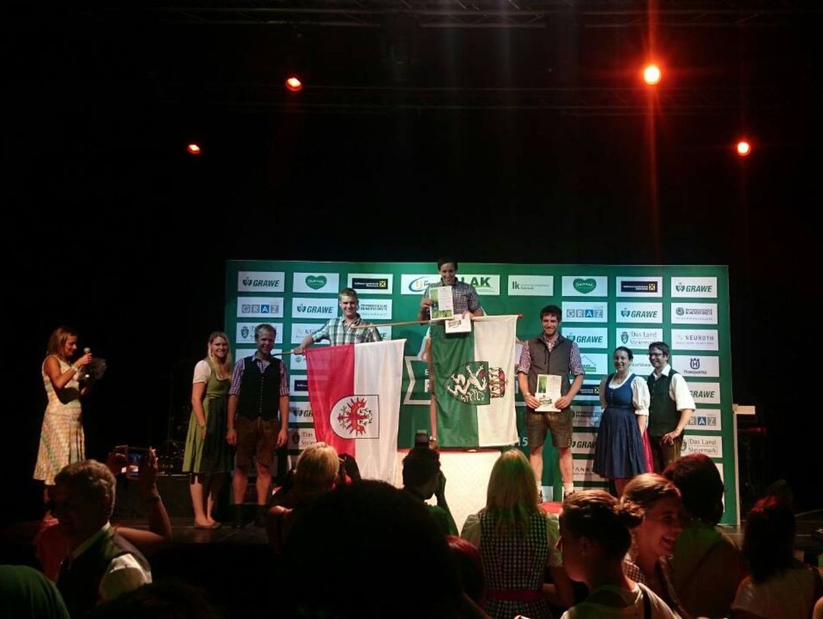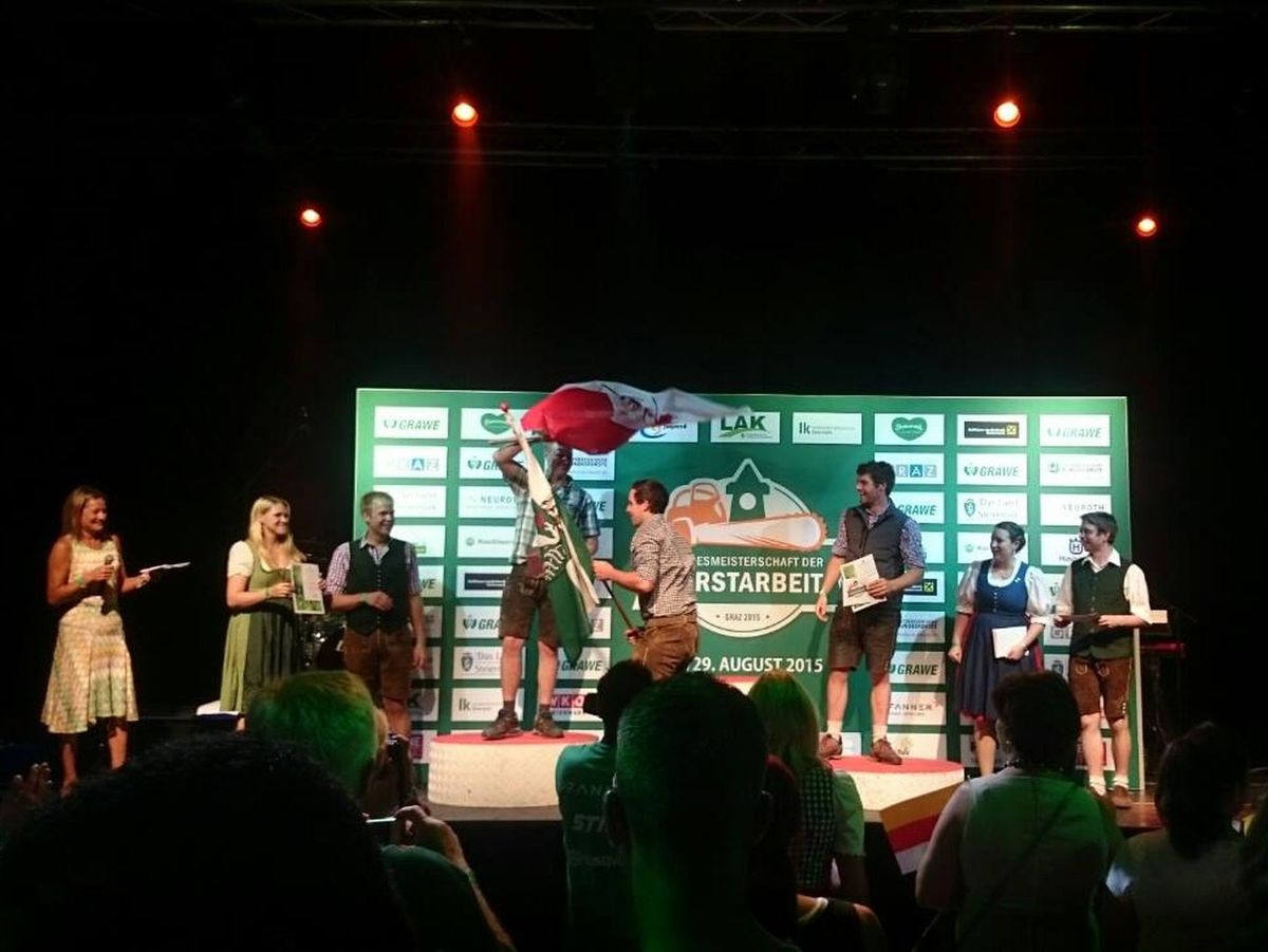 Nach einer Unmenge an Vorbereitungen ging am 28. und 29. August der Bundesentscheid Forst auf dem Grazer Hauptplatz über die Bühne. Das steirische Team bestehend aus Christian Rinnhofer und Christoph Pusterhofer aus dem Nachbarbezirk, sowie unseren beiden Bruckern Lukas Steer (LJ St. Katharein) und Johannes Meisenbichler (LJ Kapfenberg) konnte betrachtliche Ergebnisse erreichen. Hinter Kärnten und Tirol holten sie sich den hervorragenden dritten Platz in der Teamwertung. Die Einzelmedaillen unserer beiden Forstwettkämpfer sprechen für sich. Lukas Steer erkämpfte sich zwei Goldmedaillen (Theorieteil und Fallkerb- & Fällschnitt) und eine Bronzemedaille (Kettenwechsel). Auch Johannes Meisenbichler holte sich einmal Gold (Präzisionsschnitt) einmal Silber (Fallkerb- & Fällschnitt) und einmal Bronze (Kombinationsschnitt). Komplettiert wurden die steirischen Medaillen durch den 2.Platz im Theorieteil durch Christoph Pusterhofer. In der Gesamtwertung erreichte Lukas Steer den undankbaren 4. Platz. Johannes Meisenbichler landete auf dem 14. Platz. Wir gratulieren unseren beiden Motorsägen-Profis, sowie dem gesamten steirischen Team zu ihren hervorragenden Leistungen! Weitere Fotos, ausführliche Berichte und alle Ergebnisse findet ihr unter www.graz2015.at, auf der Homepage der Landjugend Steiermark und der Landjugend Österreich.