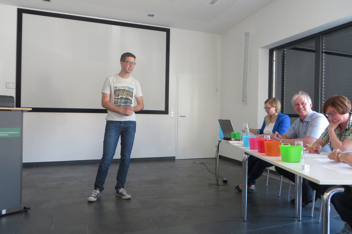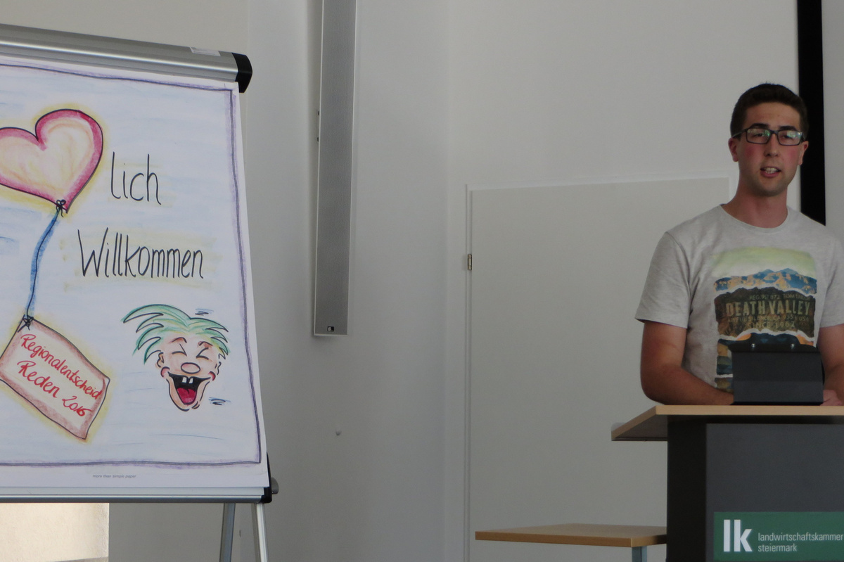 Am vergangenen Samstag, 16. April bewiesen 15 Landjugendliche, dass sie ganz bestimmt nicht auf den Mund gefallen sind. Sie stellten sich in zwei Kategorien der rhetorischen Herausforderung und überzeugten die Jury von ihren Redekünsten. Dieses Jahr konnten die Redner des LJ-Bezirks Bruck/Mur triumphieren: Elisabeth Hollerer aus Mariazell und Bezirksobmann Stefan Sonnleitner aus Kapfenberg siegten ex equo bei der vorbereiteten Rede. Der Aflenzer Manuel Repolusk holte sich in der Königsdisziplin der Spontanrede den Sieg. Die Jury, bestehend aus Bezirksbäuerin-Stv. Monika Täubl, Kammersekretär Ing. Walter Leitner und LJ-Bundesobmann Martin Stieglbauer zeigten sich begeistert von den Leistungen. Die Spontanrede als Königsdisziplin Die Themen der Spontanrede sind so vielseitig wie die Landjugend selbst. Sie reichten von A wie Atomenergie über Veranstaltungsverordnung, Politik und Kirche bis Z wie Zentralmatura. Das Thema wurde gezogen. Nach einminütiger Vorbereitungszeit galt es in einer Rede von vier bis sechs Minuten zu überzeugen. Das Thema „Homoehe – ein No-Go für dich?“ brachte Manuel Repolusk aus Aflenz den Sieg. Platz zwei ging an Patrick Hirschler aus Krieglach für seine Rede zum Thema „Mit Elektroautos in die Zukunft fahren!?“. Der Langenwanger Georg Windhaber holte sich mit seinem Auftritt Platz drei. Ex equo auf Platz eins Den ersten Platz in der Kategorie Vorbereitete Rede teilten sich gleich zwei Brucker Landjugendliche: Elisabeth Hollerer aus Mariazell und Stefan Sonnleitner erhielten von der Jury die selbe Punktanzahl. Sie holten den sich den Sieg. Platz drei ging mit 14 Punkten Rückstand an die Sieger an Georg Windhaber aus Langenwang, der somit gleich zwei dritte Plätze für sich verzeichnete. Die besten Redner des Landes beim Landesentscheid Reden Am kommenden Samstag, 23. April treten die besten Redner des Landes gegeneinander an: Im Jugend- und Familiengästehaus in Deutschlandsberg geht der Landesentscheid über die Bühne. Auch die LJ-Bezirke der Region Mur-Mürz werden vertreten sein. Wir sagen DANKE bei allen, die mitgemacht haben! Alle Details findet ihr in der Ergebnisliste.