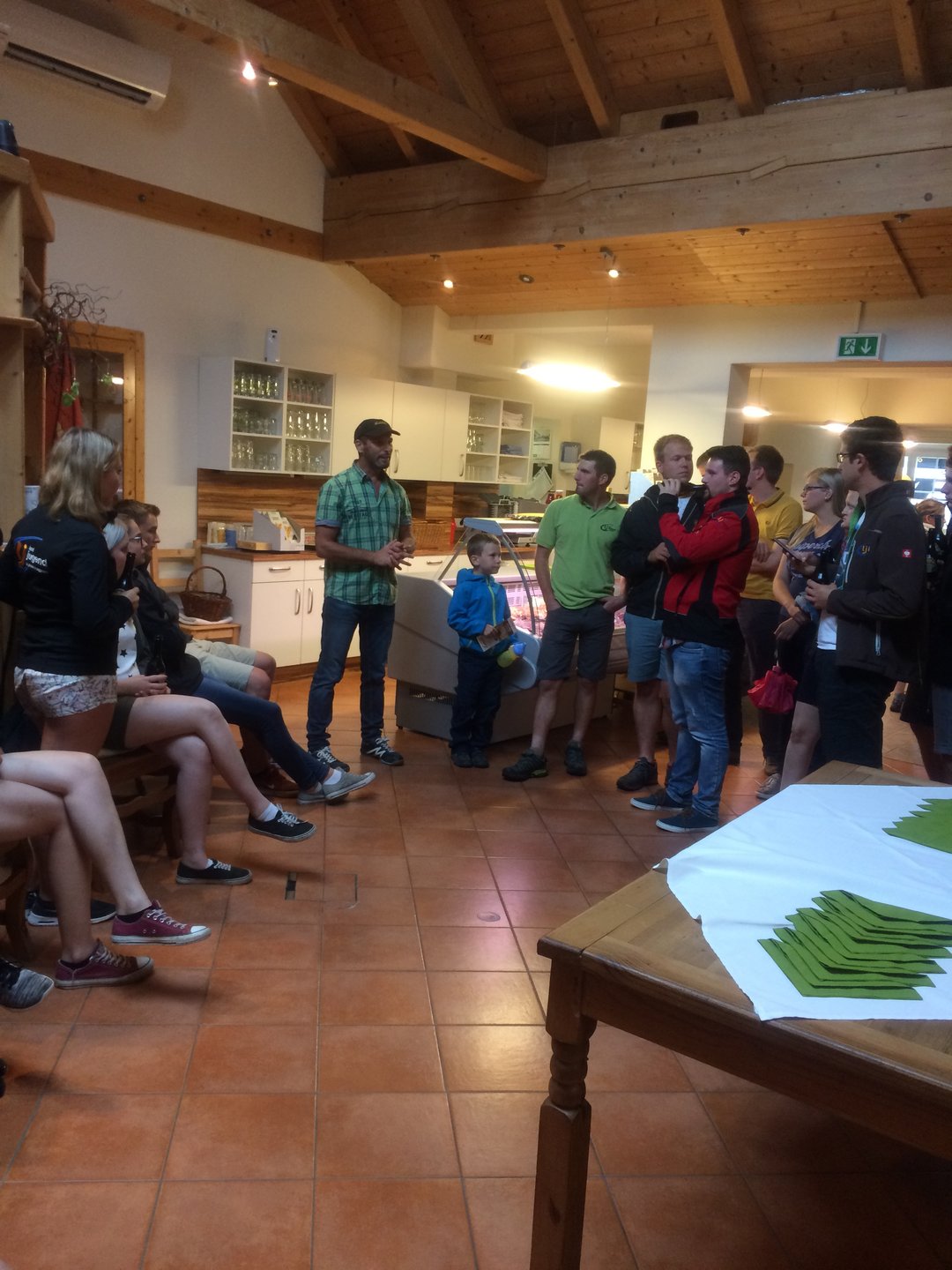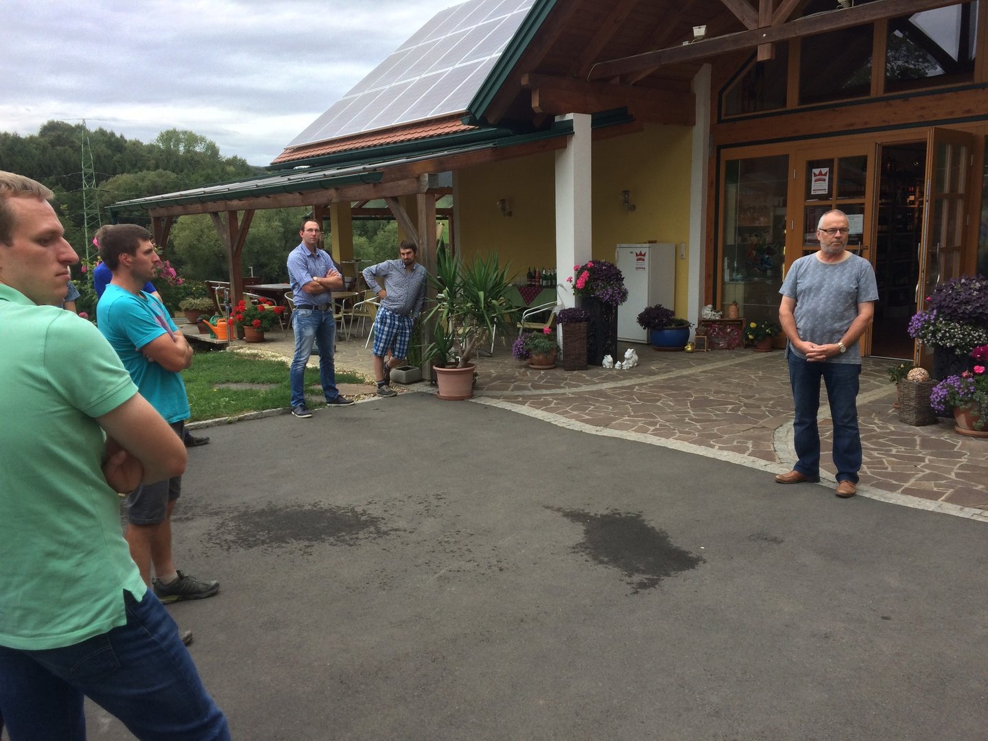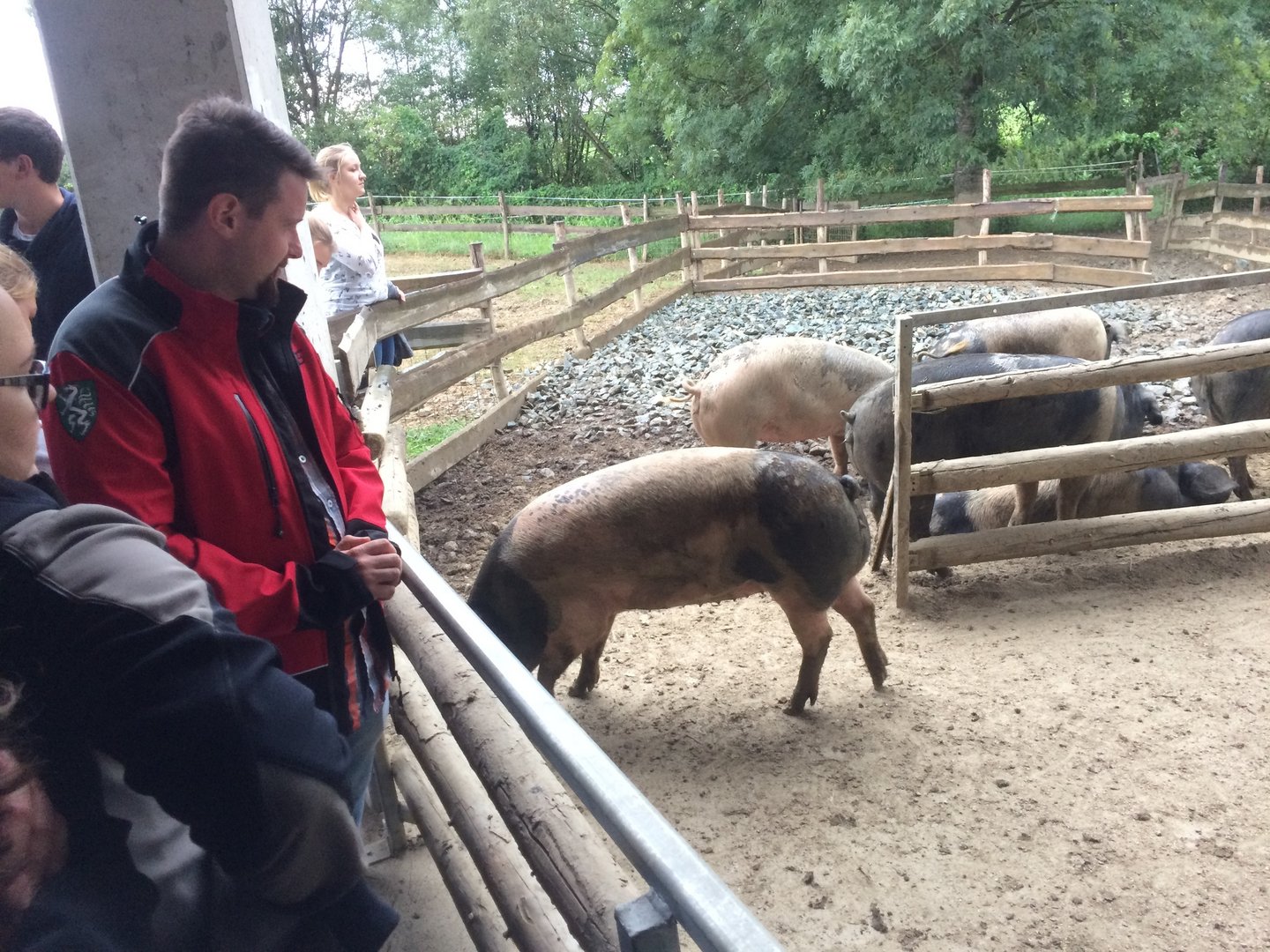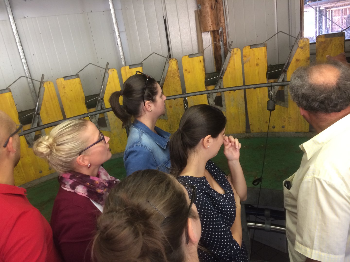 Los ging es schon früh morgens vom Steiermarkhof zur ersten Station: die Essig- und Senfmanufaktur Fischerauer. In Pischelsdorf in der Oststeiermark durften wir eine Menge über die Senfproduktion erfahren, z.B. was für die Farbe des Senfs verantwortlich ist und wie man industriell produzierten von per Hand hergestellten unterscheiden kann. Erstaunlicherweise erfuhren wir, dass diese Senfmanufaktur 31 verschiedene Senfsorten anbietet. Aber auch die Essigproduktion kann sich sehen lassen. Sorten, von denen man nicht einmal annähernd gedacht hätte, dass sie zur Salatverfeinerung dienen könnten wurden uns vorgestellt. Unsere zweite Station führte uns zu einem etwas ungewöhnlicheren Betrieb. Wir besichtigten den Töchterlehof in Oberfeistritz, der sich auf die Stutenmilchproduktion spezialisiert hat. Diese Produktion gestaltet sich als sehr aufwendig, da die Stute nur Milch gibt wenn das Fohlen daneben ist und auch die Menge hält sich dabei in Grenzen. Was auch für einige von uns neu war, war dass man diese Stutenmilch nicht erhitzen darf. Nach dem Melken wird sie gleich eingefroren, da sie sich sonst nicht hält. Auch bei der Verkostung wurde uns bewusst, dass diese Milch bis auf die Farbe gar nichts mit der Kuhmilch gemeinsam hat. Nach dem Mittagessen besichtigten wir den Biohof Labonca, der sich auf die Freilandschweinehaltung spezialisiert hat. Wer glückliche Schweine sehen möchte ist dort am richtigen Platz. Die Schweine leben dort im Schweineparadies und um den Stress bei der Schlachtung zu mindern wurde direkt am Freigelände der Schweine ein Weideschlachthaus gebaut. Dass die Qualität des Fleisches auch perfekt ist durften wir bei einer Verkostung feststellen. Anschließend ging es für uns ins Burgenland, wo das Quartier bezogen wurde und danach machten wir uns auf den Weg zur Siegerehrung des Bundesentscheids Pflügen mit anschließender Siegerparty in Bildein. Am Sonntag besichtigten wir das Obstgut Hoanzl in Kukmirn. Dieser Familienbetrieb hat sich auf die Obstveredelung spezialisiert, wovon wir uns auch wieder bei einer Verkostung überzeugen durften. Am Nachmittag stand dann noch die Besichtigung des Betriebes Energiekreis Haller KG an. Dieser hat rund 1.300 Mastrinder in riesigen Rundbogenhallen mit eigener Biogasanlage. Dies war auch äußerst interessant für uns, da niemandem von uns solche Dimensionen bekannt waren. Und als kompletten Gegensatz dazu war unsere letzte Station die Besichtigung des Betriebes Wagner, ein idyllischer Milchschafbetrieb mit 180 Milchschafen, der von Milchkühen auf Schafe umgestellt hat und seinen Melkstand selber gebaut hat. Damit ging ein tolles, lehrreiches und vor allem kulinarisches Wochenende zu Ende!