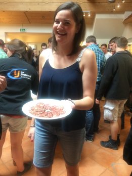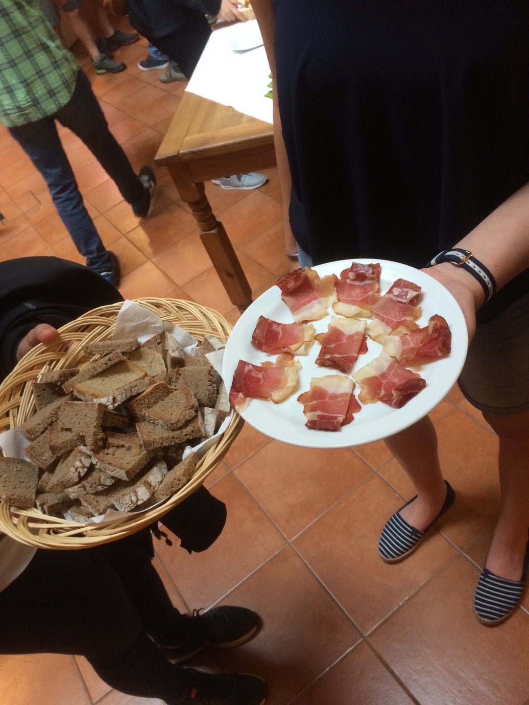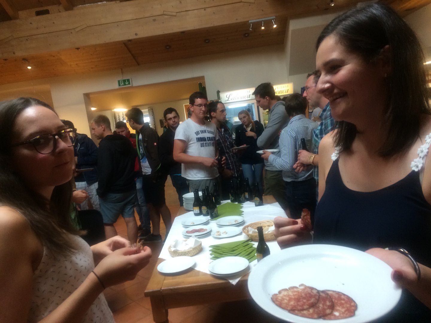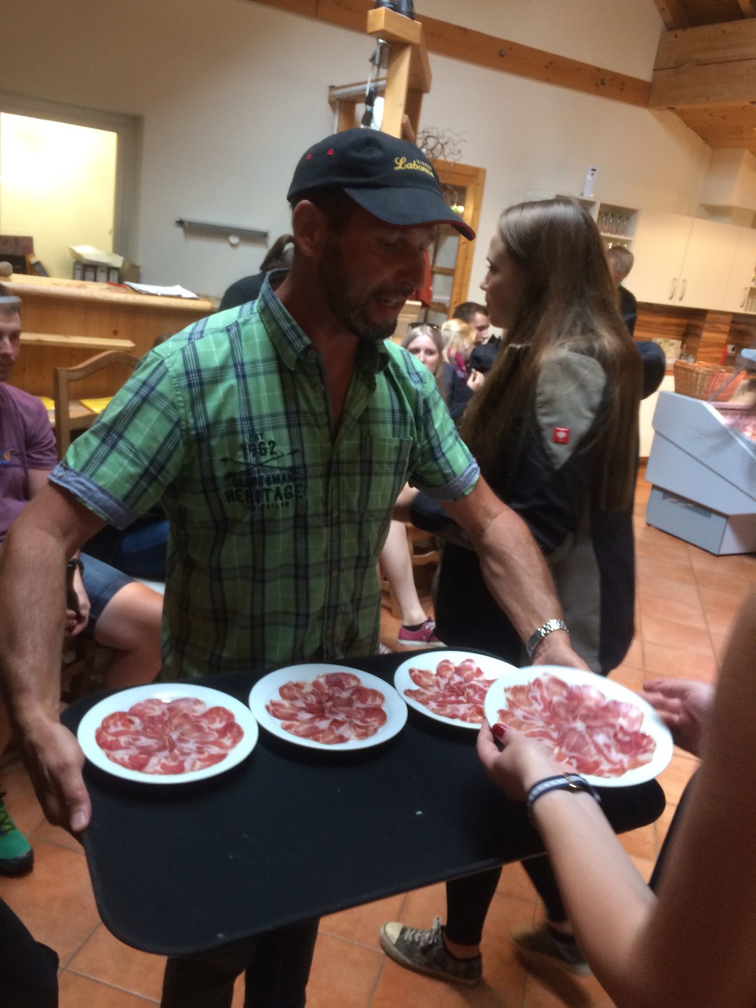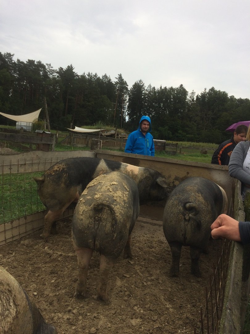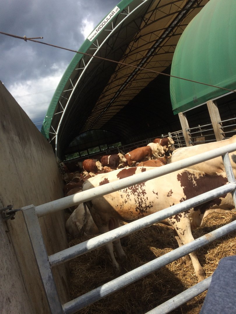 Los ging es schon früh morgens vom Steiermarkhof zur ersten Station: die Essig- und Senfmanufaktur Fischerauer. In Pischelsdorf in der Oststeiermark durften wir eine Menge über die Senfproduktion erfahren, z.B. was für die Farbe des Senfs verantwortlich ist und wie man industriell produzierten von per Hand hergestellten unterscheiden kann. Erstaunlicherweise erfuhren wir, dass diese Senfmanufaktur 31 verschiedene Senfsorten anbietet. Aber auch die Essigproduktion kann sich sehen lassen. Sorten, von denen man nicht einmal annähernd gedacht hätte, dass sie zur Salatverfeinerung dienen könnten wurden uns vorgestellt. Unsere zweite Station führte uns zu einem etwas ungewöhnlicheren Betrieb. Wir besichtigten den Töchterlehof in Oberfeistritz, der sich auf die Stutenmilchproduktion spezialisiert hat. Diese Produktion gestaltet sich als sehr aufwendig, da die Stute nur Milch gibt wenn das Fohlen daneben ist und auch die Menge hält sich dabei in Grenzen. Was auch für einige von uns neu war, war dass man diese Stutenmilch nicht erhitzen darf. Nach dem Melken wird sie gleich eingefroren, da sie sich sonst nicht hält. Auch bei der Verkostung wurde uns bewusst, dass diese Milch bis auf die Farbe gar nichts mit der Kuhmilch gemeinsam hat. Nach dem Mittagessen besichtigten wir den Biohof Labonca, der sich auf die Freilandschweinehaltung spezialisiert hat. Wer glückliche Schweine sehen möchte ist dort am richtigen Platz. Die Schweine leben dort im Schweineparadies und um den Stress bei der Schlachtung zu mindern wurde direkt am Freigelände der Schweine ein Weideschlachthaus gebaut. Dass die Qualität des Fleisches auch perfekt ist durften wir bei einer Verkostung feststellen. Anschließend ging es für uns ins Burgenland, wo das Quartier bezogen wurde und danach machten wir uns auf den Weg zur Siegerehrung des Bundesentscheids Pflügen mit anschließender Siegerparty in Bildein. Am Sonntag besichtigten wir das Obstgut Hoanzl in Kukmirn. Dieser Familienbetrieb hat sich auf die Obstveredelung spezialisiert, wovon wir uns auch wieder bei einer Verkostung überzeugen durften. Am Nachmittag stand dann noch die Besichtigung des Betriebes Energiekreis Haller KG an. Dieser hat rund 1.300 Mastrinder in riesigen Rundbogenhallen mit eigener Biogasanlage. Dies war auch äußerst interessant für uns, da niemandem von uns solche Dimensionen bekannt waren. Und als kompletten Gegensatz dazu war unsere letzte Station die Besichtigung des Betriebes Wagner, ein idyllischer Milchschafbetrieb mit 180 Milchschafen, der von Milchkühen auf Schafe umgestellt hat und seinen Melkstand selber gebaut hat. Damit ging ein tolles, lehrreiches und vor allem kulinarisches Wochenende zu Ende!