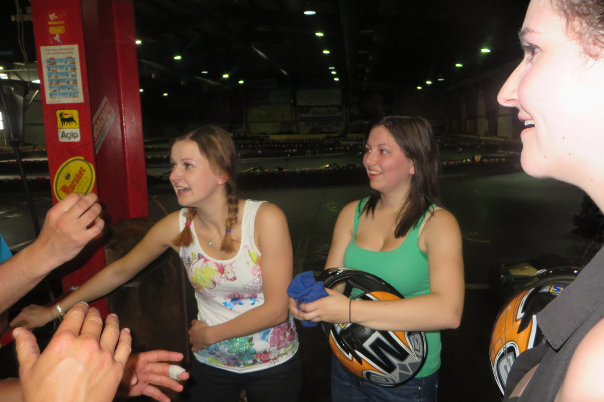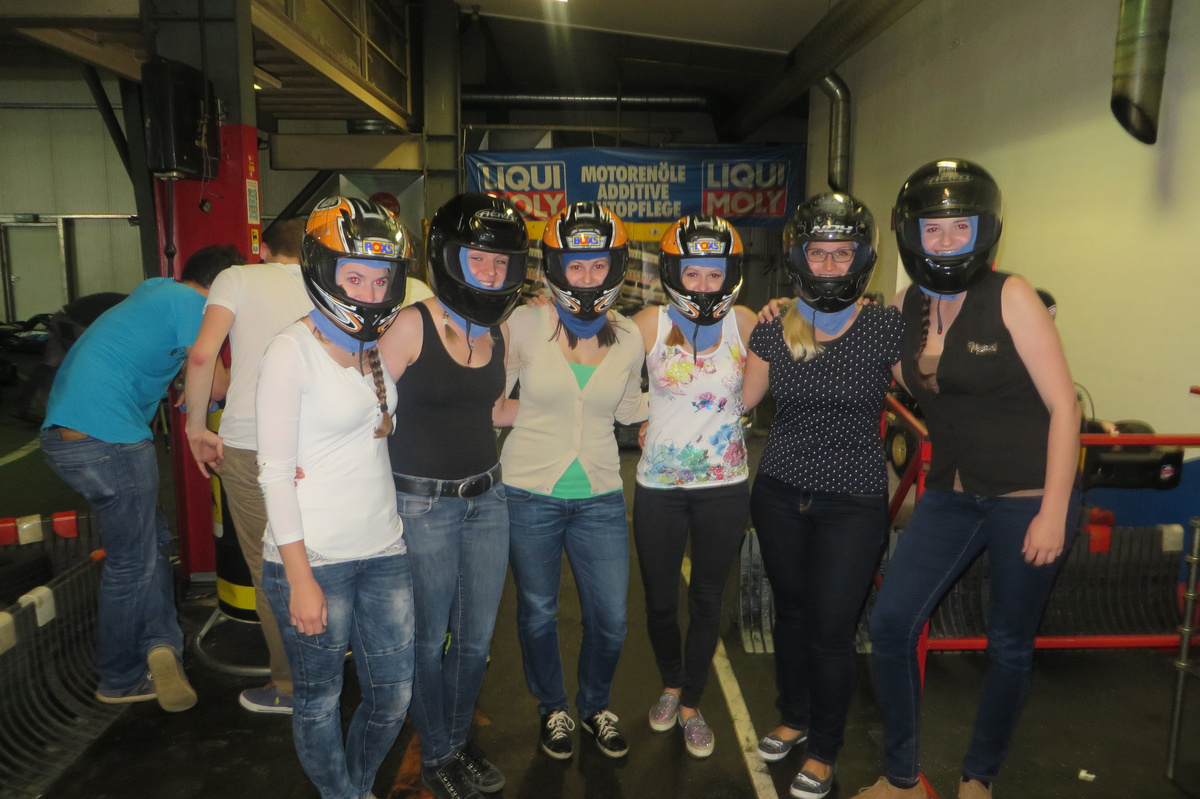 Schon seit der Jahresplanung im April wussten wir, dass sich unsere zwei Vorstandsmitglieder Hanna und Renate den Kopf zerbrachen, wohin wir denn am 19. Juni fahren werden. Bis wir schlussendlich ausstiegen, hatten wir keinen blassen Schimmer, wo es eigentlich hingehen würde. Aber fangen wir am Anfang an - Den Start in den Tag bildete ein köstliches Frühstück in der Konditorei Mandl mit allem was das Frühstücksherz begehrt. Von weichem Ei über Schinken, Käse bis hin zu süßen Verführungen war für jeden etwas dabei. Mit drei Autos begaben wir uns dann auf die Fahrt in's Ungewisse. Außer, dass wir ungefähr ein halbe Stunde fahren würden, wussten wir nichts über unser Ziel, was natürlich zu einigen Ratespielen auf der Hinfahrt führte. Halt machten wir schließlich vor einer Indoor-Cart-Bahn in Spielberg. Da wir 13 Leute waren, teilten wir uns in eine Männer- und Frauenwertung auf. Jeweils 10min Qualifying und 20min Rennen standen auf dem Programm. Die Burschen zeigten zuerst ihr Können auf der Rennbahn. Unser Bezirkskassier Dietmar konnte sich schließlich mit einem großen Abstand durchsetzen. Danach begaben sich die sechs Mädls in die schnellen Gefährte, und zeigten, dass der Motorsport schon lange nicht nur Männersache ist. Nach einer Massenkarambolage und einigen kleineren "Unfällen" konnte sich schließlich unsere Pressereferentin Gabi durchsetzen. Um uns nach diesem Abenteuer zu stärken begaben wir uns nach Seckau, um zu Mittag zu essen. Danach bekamen wir eine wirklich interessante Führung durch die Abtei Seckau, die nach der Besichtigung des Prunkbaus, der Kirche und der Destillerie mit einer kurzen Schnapsverkostung abgerundet wurde. Zum Abschluss trafen wir uns schließlich nochmal in der Konditorei Mandl, um den Tag ausklingen zu lassen. Danke liebe Renate und liebe Hanna für die tolle Organisation dieses lustigen Tages. Wir sind mit Sicherheit wieder ein Stück weiter zusammengewachsen und freuen uns auf das nächste Abenteuer, wo auch immer es hingeht! :)