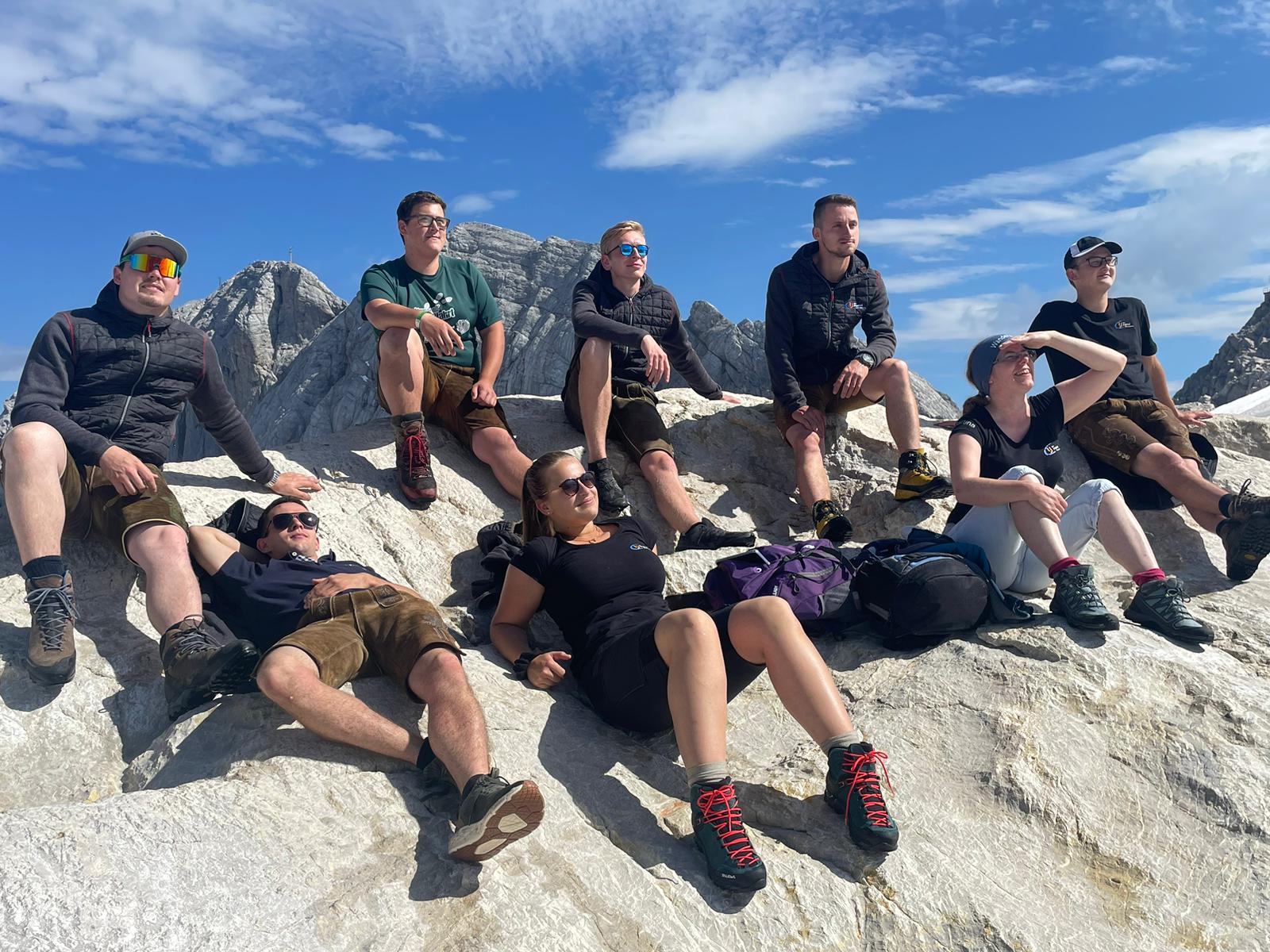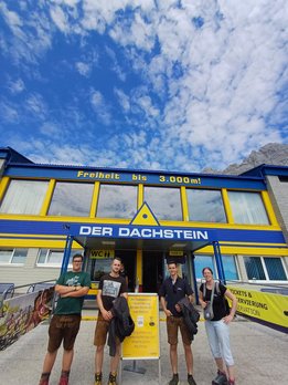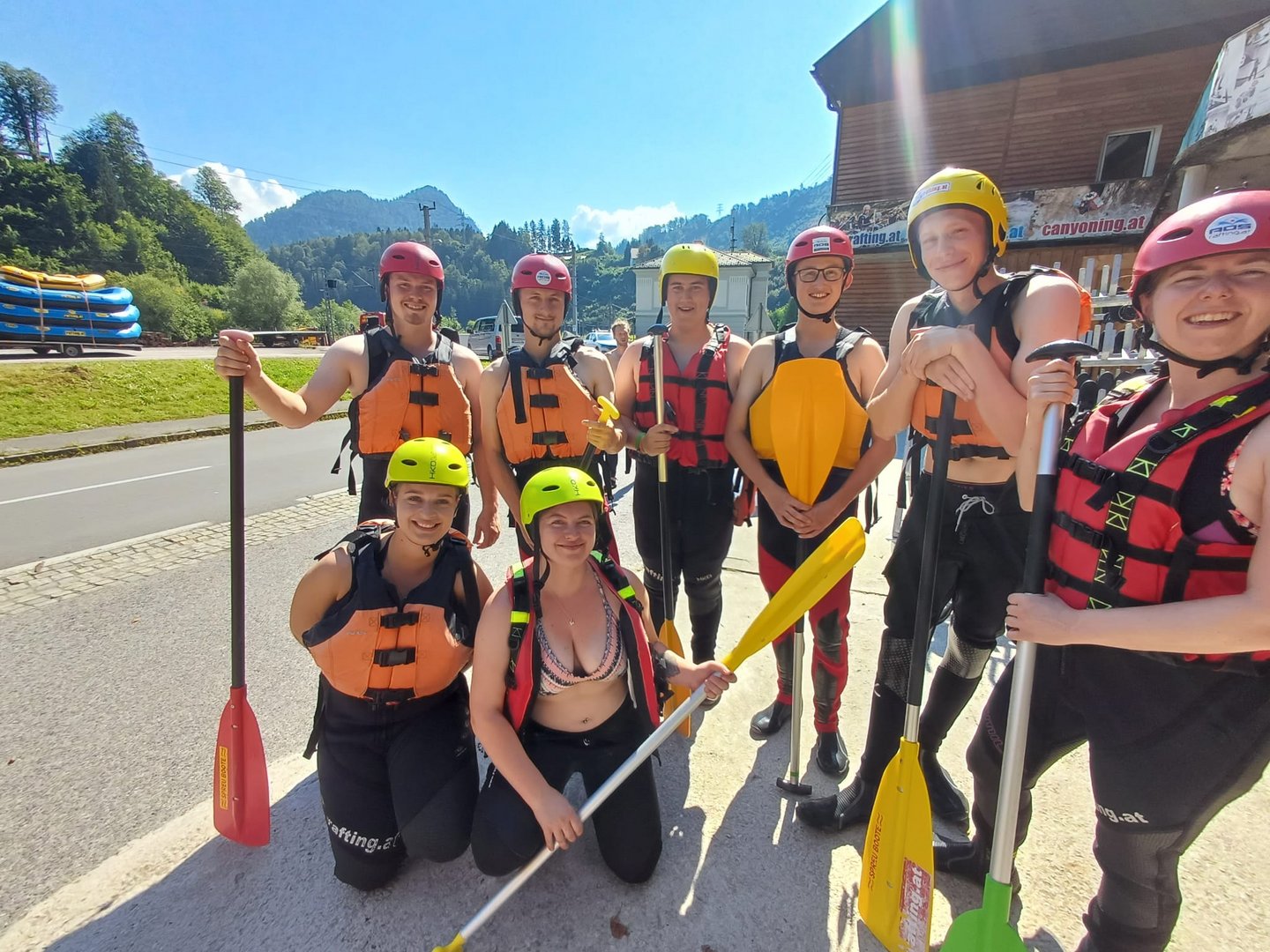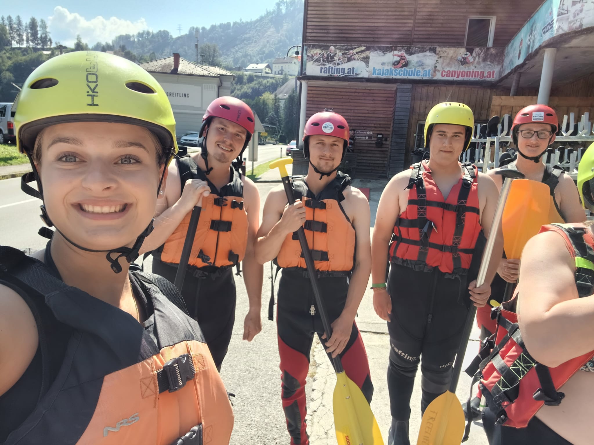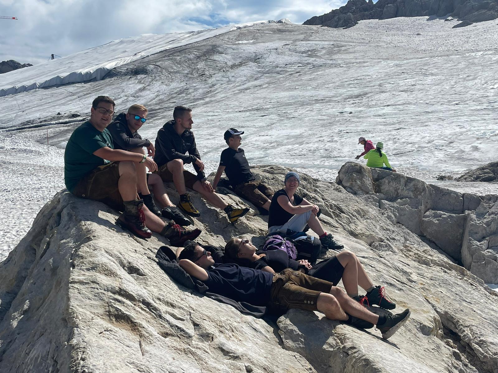 Samstag, am 19.8.2023, machten wir uns auf den Weg zu unserer 2-tägigen Fahrt ins Blaue. Wir starteten bei einem Frühstück in Turnau bei der Bäckerei Seidl, dann ging die bergige Reise auch schon los. Über Sattler, Hiaslegg in Trofaiach angekommen gings weiter in Richtung Palfau zum Raften in der Salza. Im schönen Gesäuse Gebiet unterwegs, sind wir Nachmittags zum Genussmosthof Veitlbauer in St. Gallen zu einer Mostverkostung vorbeigekommen. Den Abend haben wir dann noch bei gutem Essen ausklingen lassen. Sonntag ging die Reise für uns weiter zum Mointain Go-Kart fahren auf der Hochwurzen in Schladming.Vom ersten Berg hinunter ging es gleich wieder auf den nächsten hoch. Wir fuhren mit der Gondel auf den höchsten Berg der Steiermark, dem Dachstein. Bei traumhaften Wetter genossen wir oben das wunderschöne Panorma und machten noch einen Abstecher zur "Treppe ins Nichts" und in den bekannten "Eispalast" am Dachstein.