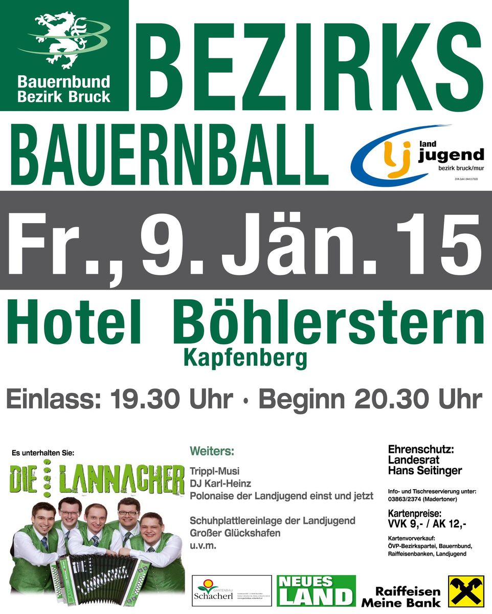 Am 9. Jänner 2015 noch nix vor? Dann rein ins Dirndl oder in die Lederhose, Tanzschuhe rauf und ab geht´s zum Bezirksbauernball der Landjugend Bruck/Mur!