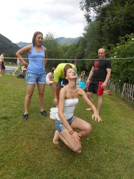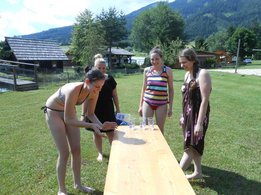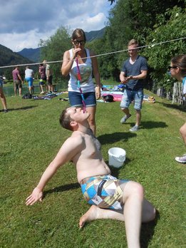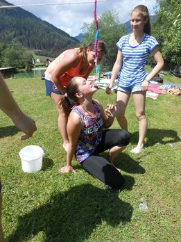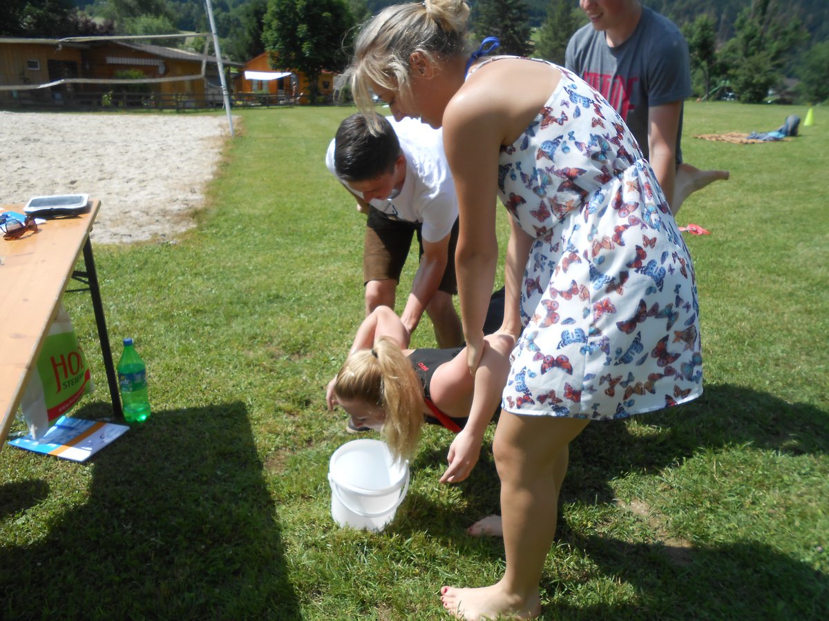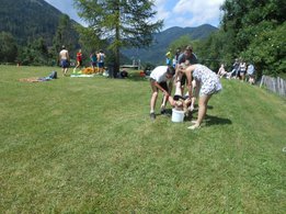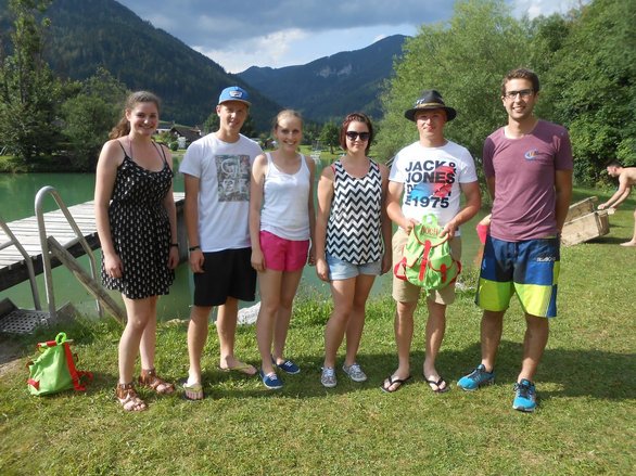 Die 4er-Teams kämpften bei den acht Stationen um jede Sekunde, jede Wäscheklammer, um jeden Meter mit dem Sautrog und natürlich um so viele Punkte beim LJ-Wissensquiz, wie nur möglich. Im Vordergrund des Bewerbes stand natürlich der Spaß, und vor allem auch das Kennenlernen neuer LJ-Mitglieder, indem immer 2er-Teams verschiedener Ortsgruppen zusammengelost wurden. So konnten die Mitglieder aus den sieben teilnehmenden Ortsgruppen ihre Geschicklichkeit in einer Gruppe unter Beweis stellen, in der sie noch nie an einem Bewerb teilgenommen hatten. Besonders freuten wir uns auch, als drei Teams aus dem LJ-Nachbarbezirk Mürzzuschlag "vor der Tür' standen". Bei der Vergabe der Preise haben wir uns diesmal etwas ganz besonderes überlegt, denn nicht die ersten drei bekamen einen Rucksack mit Leckereien, sondern folgende Teams durften sich freuen: PLATZ 10 Team 4: Anna Perl, Rica Mühlhauser, Sonja Hirschegger, Petra Schaunitzer (Etmißl/Turnau) PLATZ 1 Team 7: Christina Krenn, Thomas Wasshuber, David Ebner, Marie Posch (Aflenz/Breitenau) PREIS FÜR DIE DURCHSCHNITTSPUNKTE Team 1: Stefan Tscherntschitsch, Lisa Sonnleitner, Marlene Schruf, Erwin Ellmeier (Tragöß/Kapfenberg/MZ)