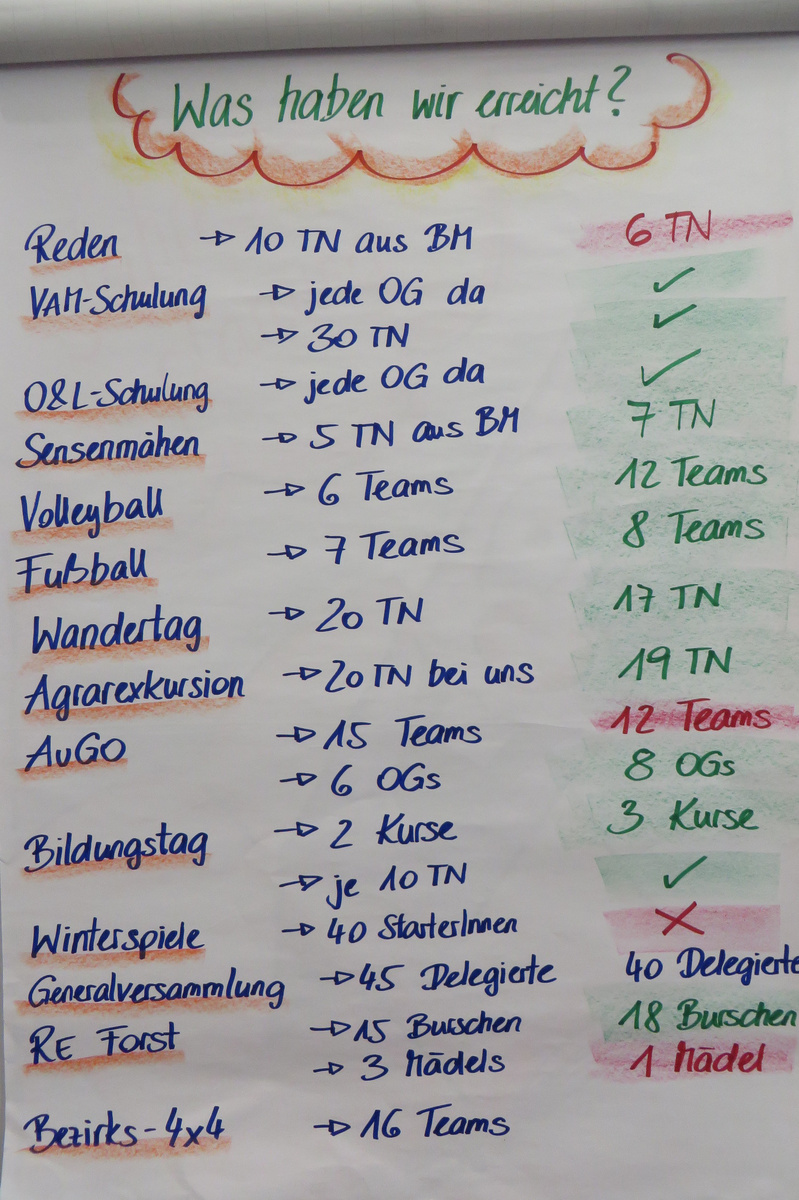 Alle Jahre wieder werden bereits beim Bezirksobmänner- und Bezirksleiterinnen-Treffen (BOBL-Treffen) Anfang März Bezirks- und Regionsziele formuliert, die uns das gesamte LJ-Jahr begleiten. Nur mit eurer Mithilfe als aktive und engagierte LJ-Mitglieder können wir diese Ziele bewältigen. Wir freuen uns darauf, wenn beim BOBL-Treffen 2017 wieder alle Ziele grün markiert sind :)
