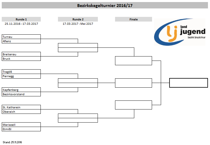 Beim Bezirkstreff am 25. November wurde die erste Runde für das diesjährige Kegelturnier ausgelost. Unsere elf Ortsgruppen und der Bezirksvorstand kämpfen ab sofort um die Titel der besten Kegler im LJ-Bezirk. Die erstgezogen Ortsgruppe muss sich bei der zweiten melden. Wenn das bis zur Generalversammlung am 17. März nicht geschieht, gewinnt automatisch die zweite Ortsgruppe. Dort findet dann die Auslosung für die zweite Runde statt.