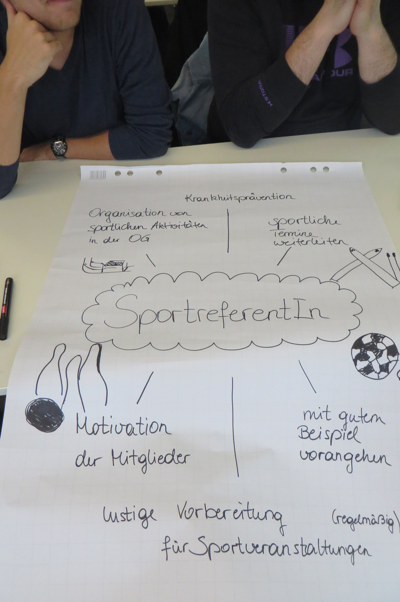 Josef Sauseng, unser Regionsbetreuer aus dem Landesvorstand, verschaffte Vorstandsmitglieder aus sämtlichen Ortsgruppen unseres Bezirkes einen guten Einblick in die Funktionärsarbeit der Landjugend. Nicht nur für Obmänner und Leiterinnen waren die Inhalte interessant. Für jedes einzelne Vorstandsmitglied, sei es SchriftführerIn, KassierIn oder PressereferentIn, waren neue und interessante Informationen dabei. Neben dem Einstiegsthema, was den die Landjugend eigentlich ist, und welche Schwerpunkt man in der Landjugendarbeit setzt, wurden in Gruppenarbeiten die Aufgaben der einzelnen Funktionärspositionen im Vorstand ausgearbeitet. Dass es unseren Landjugendfunktionären nicht an Kreativität mangelt, sah man an den gestalteten Flipcharts, mit denen die einzelnen Aufgabenbereiche dann vorgestellt wurden.