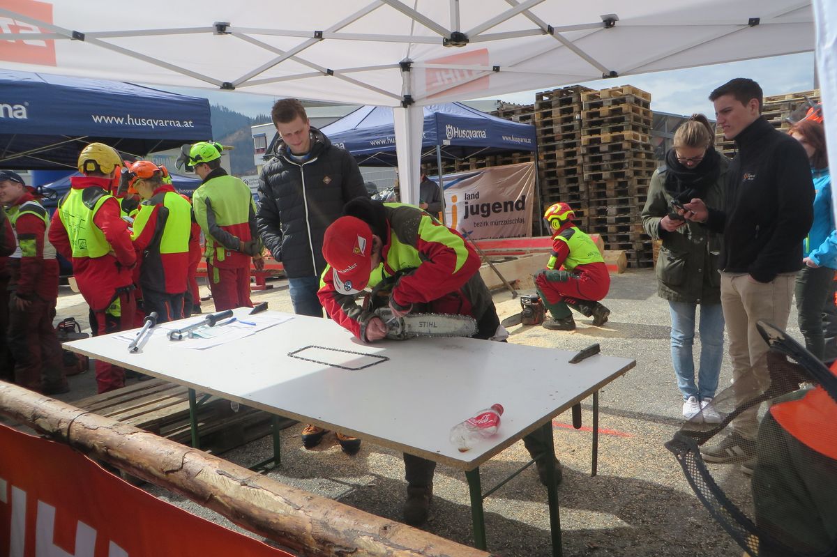 Im Rahmen des Landforstkirtags in Kapfenberg zeigten Landjugendliche der Region Mur-Mürz ihr Können im Umgang mit der Motorsäge. In sechs Disziplinen kämpften rekordverdächtige 59 TeilnehmerInnen in vier Wertungsklassen um Millimeter und Sekunden. Hunderte von Besuchern fieberten mit den StarterInnen mit und sorgten für eine besondere Wettkampfatmosphäre. Letztlich teilen sich die großen Favoriten der Wertungsklasse über 18 das Treppchen: der Leobner Michael Hafellner siegt klar vor Christian Rinnhofer (LJ-Bezirk MZ) und Lukas Steer (LJ-Bezirk Bruck/Mur). Leider etwas enttäuscht war Johannes Meisenbichler (LJ Kapfenberg) mit dem undankbaren vierten Platz. Christian Steindl (LJ Kapfenberg) und Dietmar Wöls (LJ Etmißl) sicherten sich die Plätze 7 und 8. Die weiteren Platzierungen: 11. Platz: Manuel Treitler, LJ Turnau 13. Platz: Martin Pfeffer, LJ Mariazellerland 14. Platz: Florian Gutjahr, LJ Turnau 18. Platz: David Ebner, LJ Breitenau 21. Platz: Markus Hollerer, LJ St. Katharein/L. 22. Platz: Markus Kohlhuber, LJ Tragöß 23. Platz: Hannes Hirschegger, LJ Turnau 24. Platz: Michael Hofbauer, LJ Turnau 28. Platz: Patrick Trost, LJ Mariazellerland