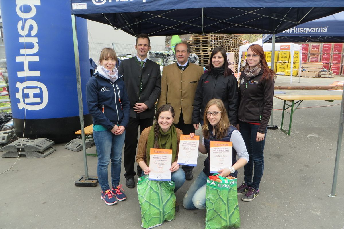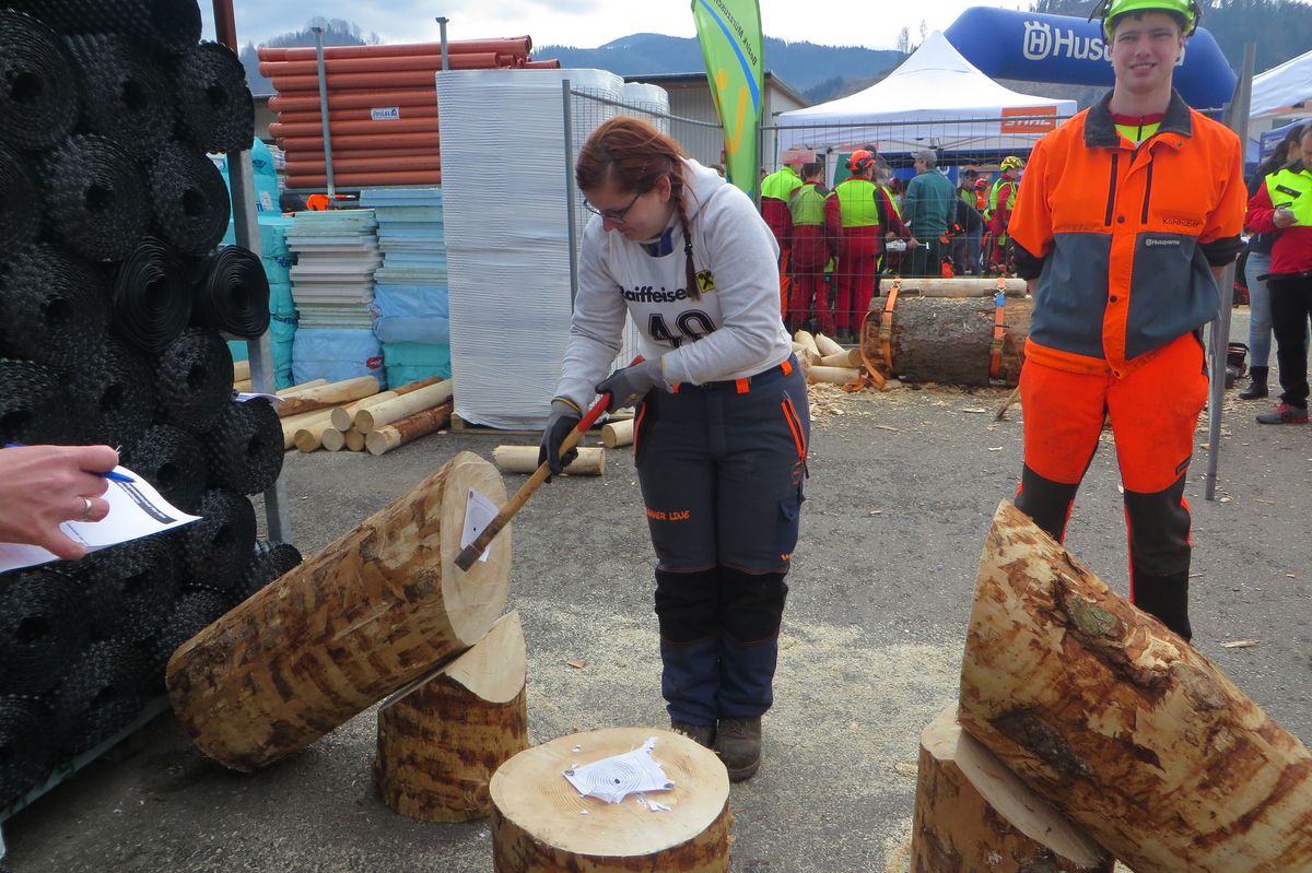 Elf Mädchen zeigten eindrucksvoll, dass der Umgang mit der Kettensäge schon lange nicht mehr nur den Männern vorbehalten ist. Sie brauchen den Vergleich mit den männlichen Mitstreitern nicht zu scheuen. Einzig und allein in der Disziplin Durchhacken zeigte sich der genetische Vorteil der muskulöseren Burschen. Die 20-jährige Barbara Rinnhofer aus Langenwang setzte sich mit ihrer Erfahrung aus sieben Regions- und Landesentscheiden am Ende durch. Unsere Gabriele Wöls (LJ Tragöß) belegte als forstliche Quereinsteigerin den hervorragenden zweiten Platz! Den dritten Platz belegte Victoria Holzer aus Neuberg (LJ-Bezirk MZ). Zum ersten Mal am Start waren auch Elisabeth Petz (LJ Tragöß, Platz 7) und Birgit Trippl (LJ Kapfenberg, Platz 9).