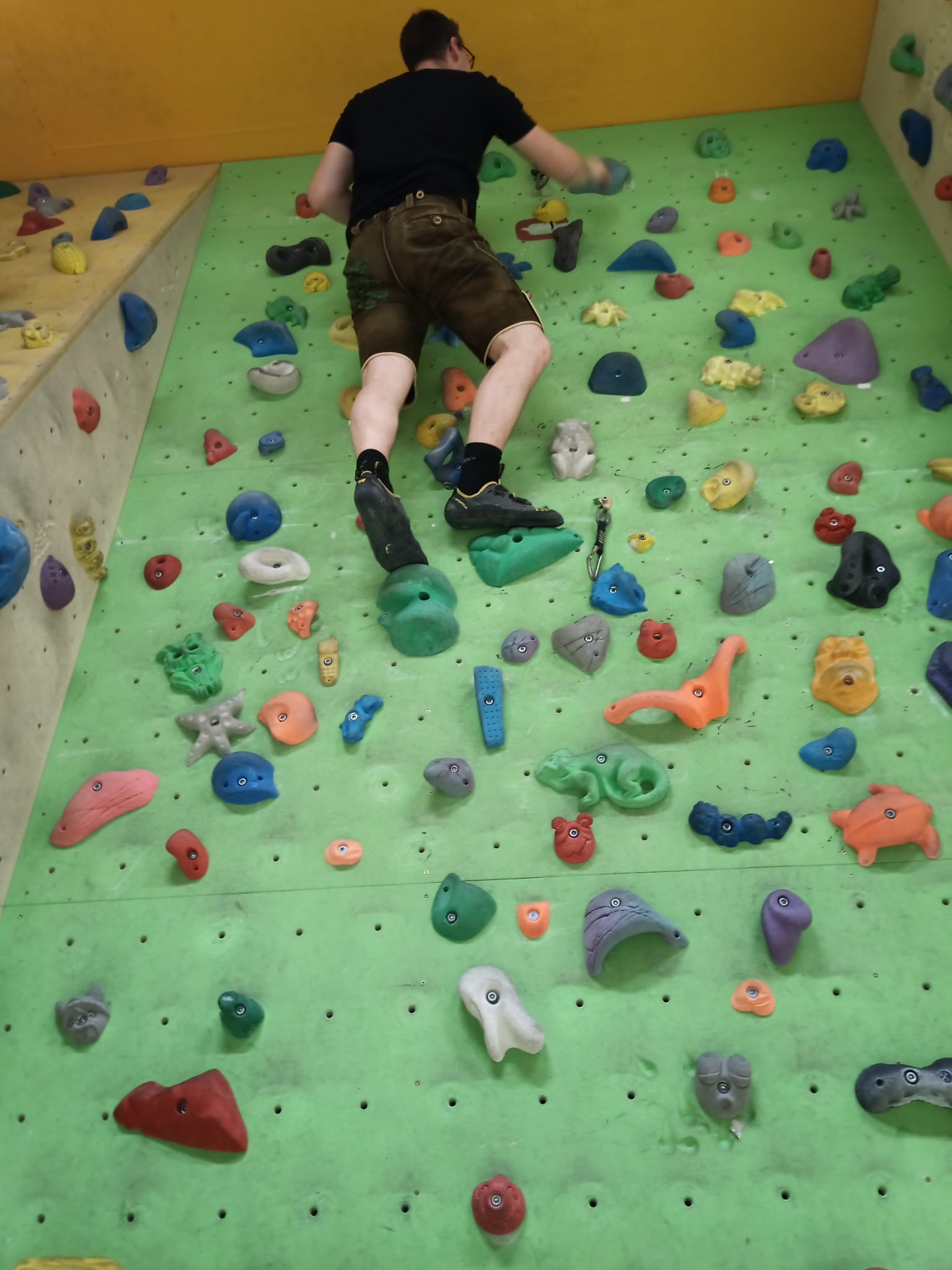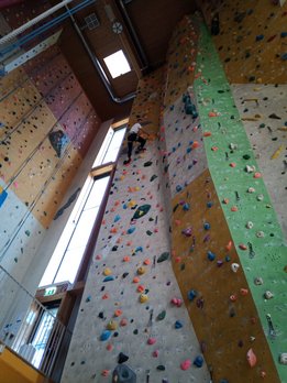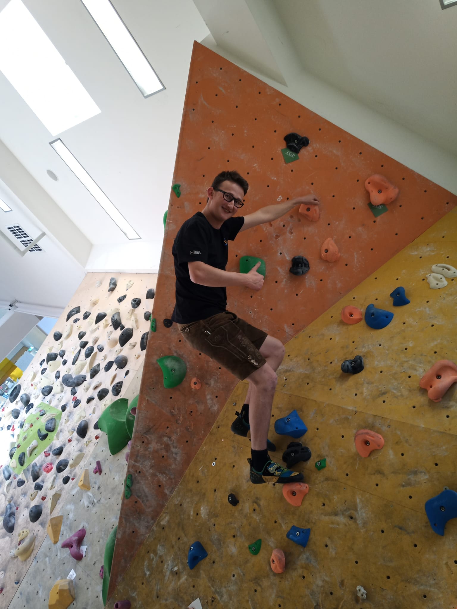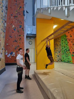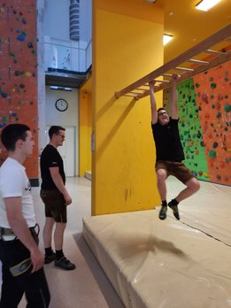 Danach ging es weiter zur Landjugendhütte der Ortsgruppe Langenwang, wo ein kühles Getränk auf uns wartete. Daraufhin fuhren wir noch zum Mittagessen nach Langenwang. Nach der Stärkung stand am Nachmittag Bouldern und Klettern am Programm, in der Kletterhalle Mitterdorf.