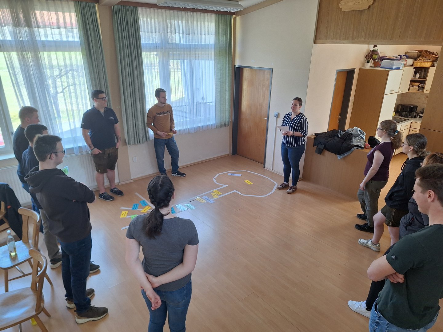 Am Anfang haben wir uns zusammengesetzt und uns vorgestellt. Dabei saßen wir in einen Sesselkreis und haben ein Streichholz angezündet. Solange das Streichholz brannte, sollte man über sich erzählen.