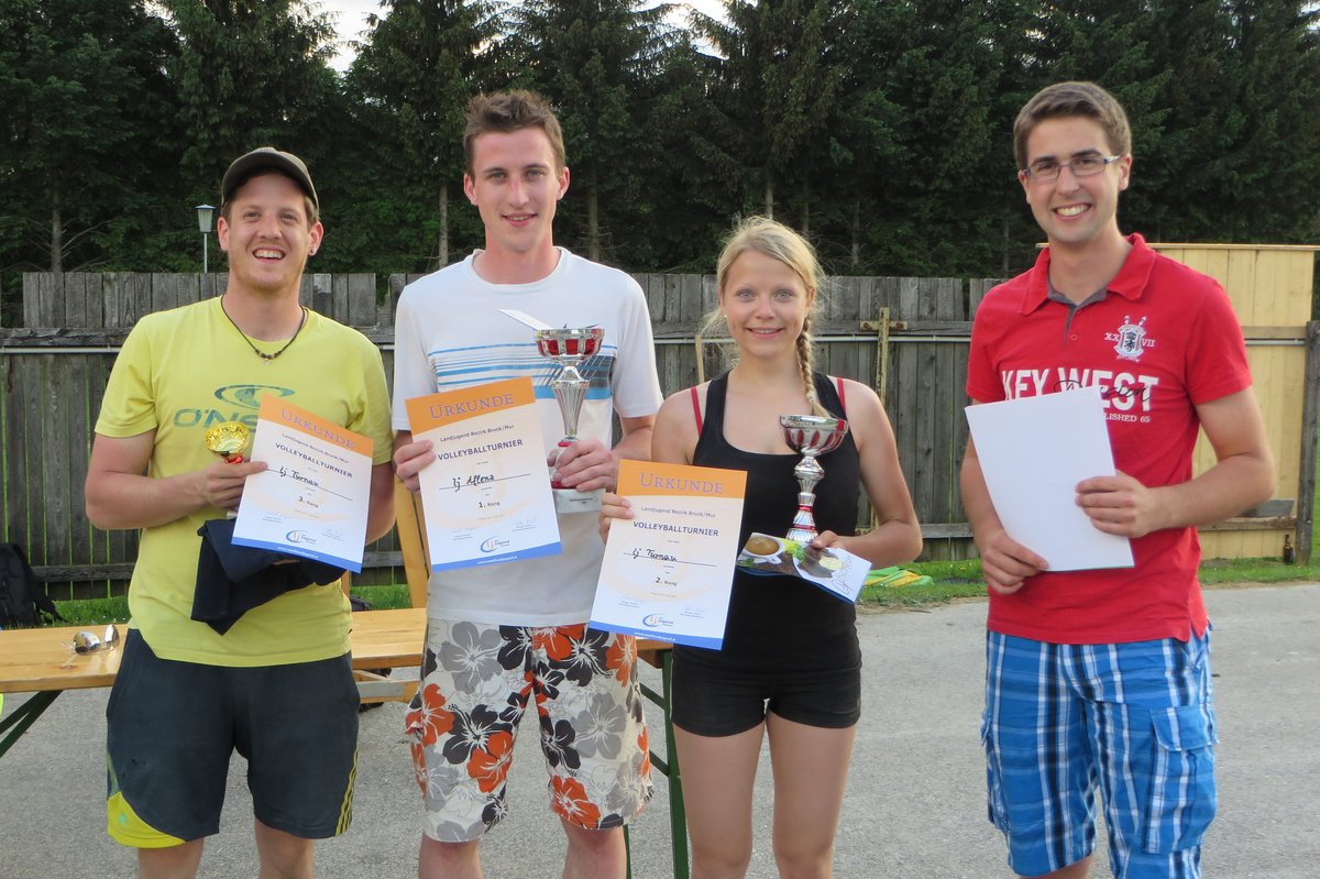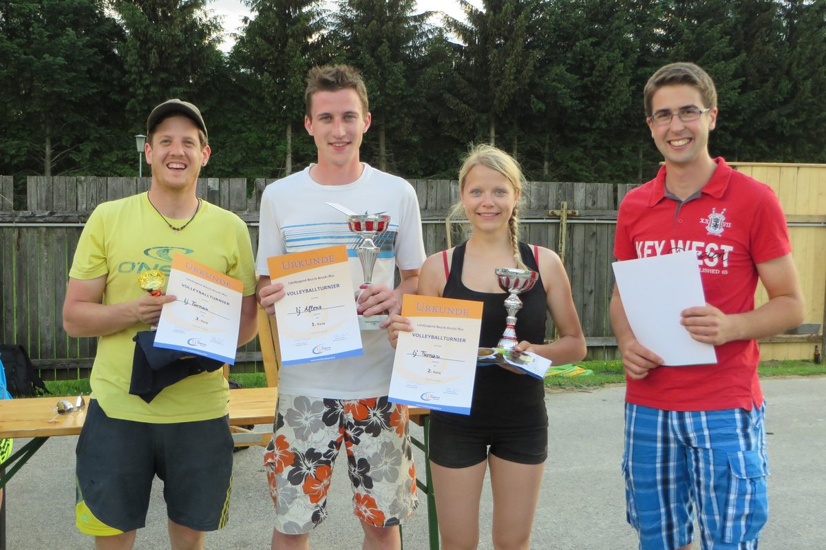 Perfekt vorbereitet wartete das Turnauer Volleyball- und Völkerballfeld am Donnerstag, dem 4. Juni bereits darauf, von uns bespielt zu werden. Die Landjugend Turnau war gewappnet für dieses lustige Sportevent. Im Völkerballturnier kämpften fünf Teams um den Sieg, der dann schließlich an die LJ Aflenz ging. Für Volleyball waren sogar zwölf Teams angemeldet, die sich einer Gruppenphase, anschließenden KO-Spielen und schließlich dem Finale stellten. Dort konnte sich ebenfalls ein Team aus Aflenz durchsetzen. Dahinter platzierten sich die Hausherren (& Damen) der LJ Turnau. Ergebnisse: Völkerball: 1. Aflenz 2. Etmißl 3. St. Katharein 4. Tragöß 5. Kapfenberg Volleyball: 1. Aflenz II 2. Turnau I 3. Turnau II 4. Aflenz I 5. Tragöß I 6. Tragöß II 7. Pernegg 8. Kapfenberg I 9. Kapfenberg II 10. Mariazell 11. St. Katharein 12. Turnau III