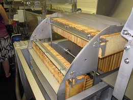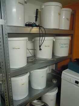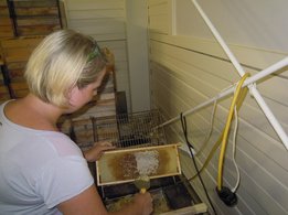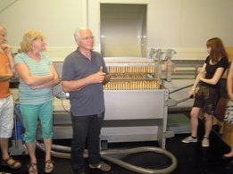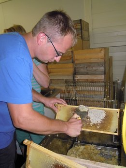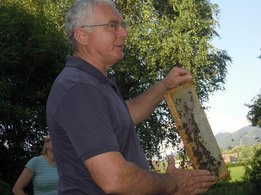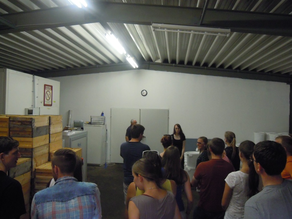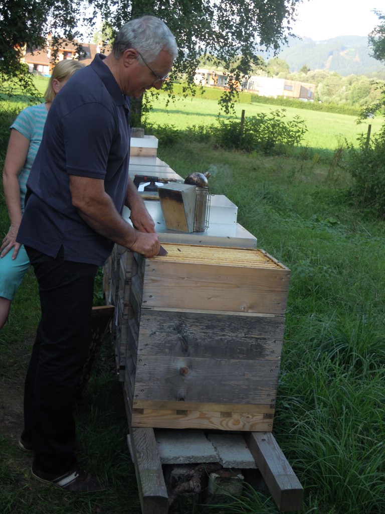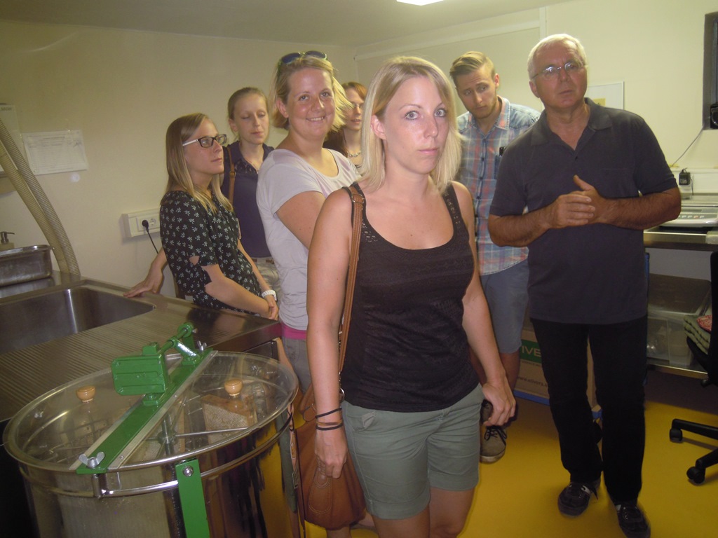 Anton Neber hat sich vor neun Jahren als Imker selbständig gemacht. 400 Bienenstöcke nennt er sein Eigentum, darin leben jeweils ca. 40.000 bis 50.000 Bienen. In ganz Österreich hat er seine fleißigen Helferinnen platziert, um Sorten- und Geschmacksvielfalt in die Wabe und letztlich ins Glas zu bringen. Dass die Imkerei seine große Leidenschaft ist, erkennt man sofort. Herr Neber gibt uns einen sehr interessanten Einblick in die Welt der Bienen und so manche/r ist verblüfft, welch ausgeklügeltes System sich die Natur hier einfallen hat lassen. Nach der Besichtigung einiger Bienenstöcke in Mürzhofen mit vielen Infos, Fakten und Hintergrundwissen zu den gutmütigen Brummern. Der Blick ins Innere eines Bienenstocks durfte dabei natürlich nicht fehlen. Im Schleuder- und Lagerraum erklärte uns Familie Neber schließlich, wie das gelbe Gold aus der Wabe gewonnen wird. Einige von uns konnten gleich selbst Hand anlegen und sich als Nachwuchsimker versuchen. Den Abschluss bildet dann der Rundgang mit Verkostung im honig-GENUSS-keller der Imkerei Neber. Dort blickten wir hinter die Kulissen der Verarbeitung, Veredelung und Abfüllung. Verschiedenste Sorten an Honig, Essig und zwei Sorten Met standen zur Verkostung bereit. Wir sind überzeugt: Honig ist nicht gleich Honig und die Imkerei nicht nur eine Leidenschaft, sondern auch eine Wissenschaft. Ein herzliches Danke an Familie Neber für ihre Bereitschaft uns ihren Betrieb zu zeigen. www.neber.at