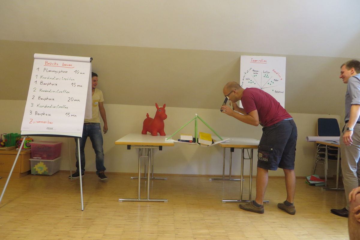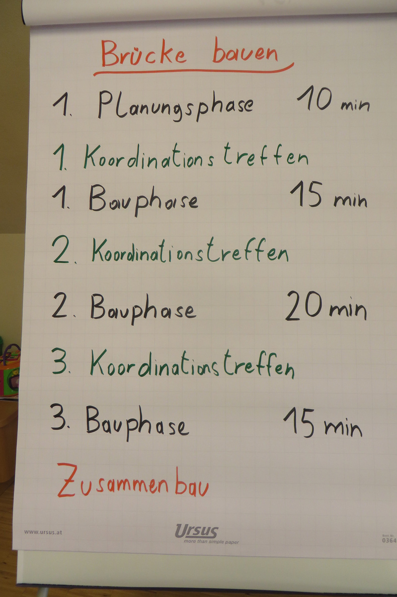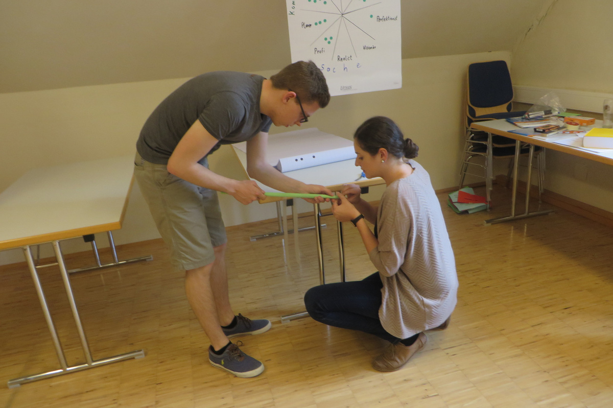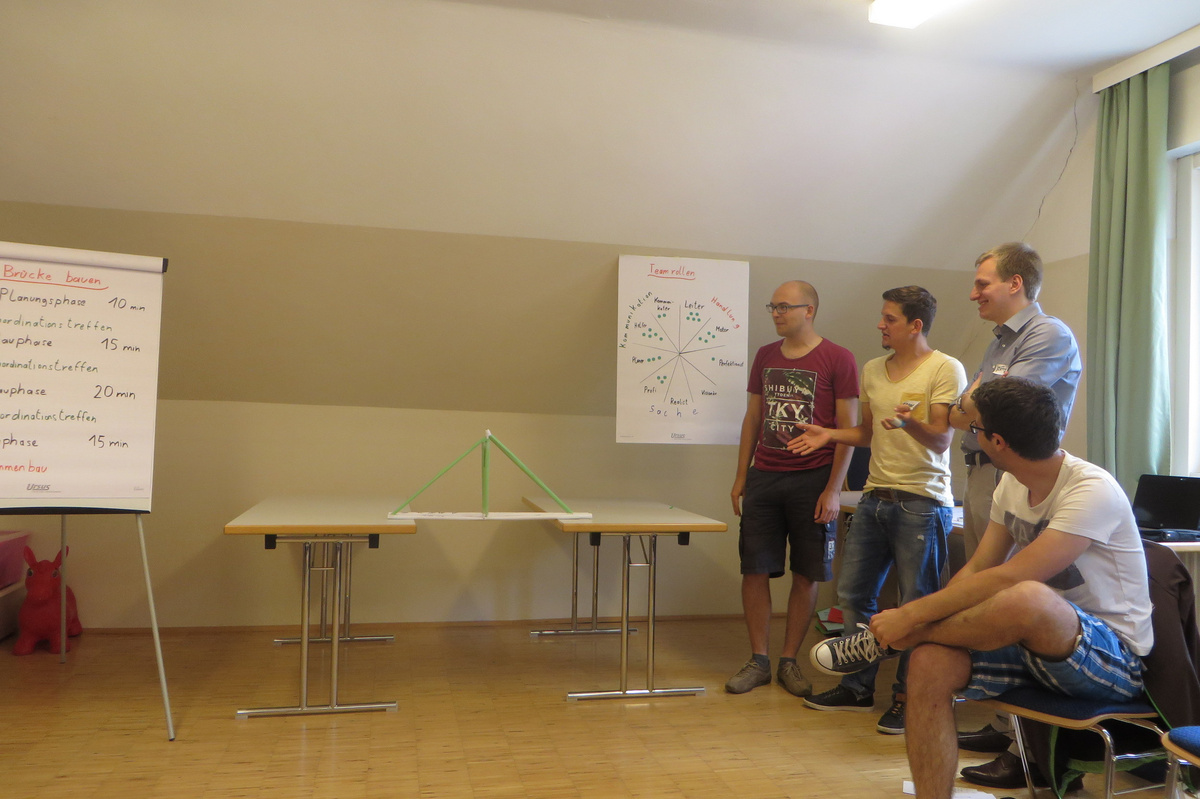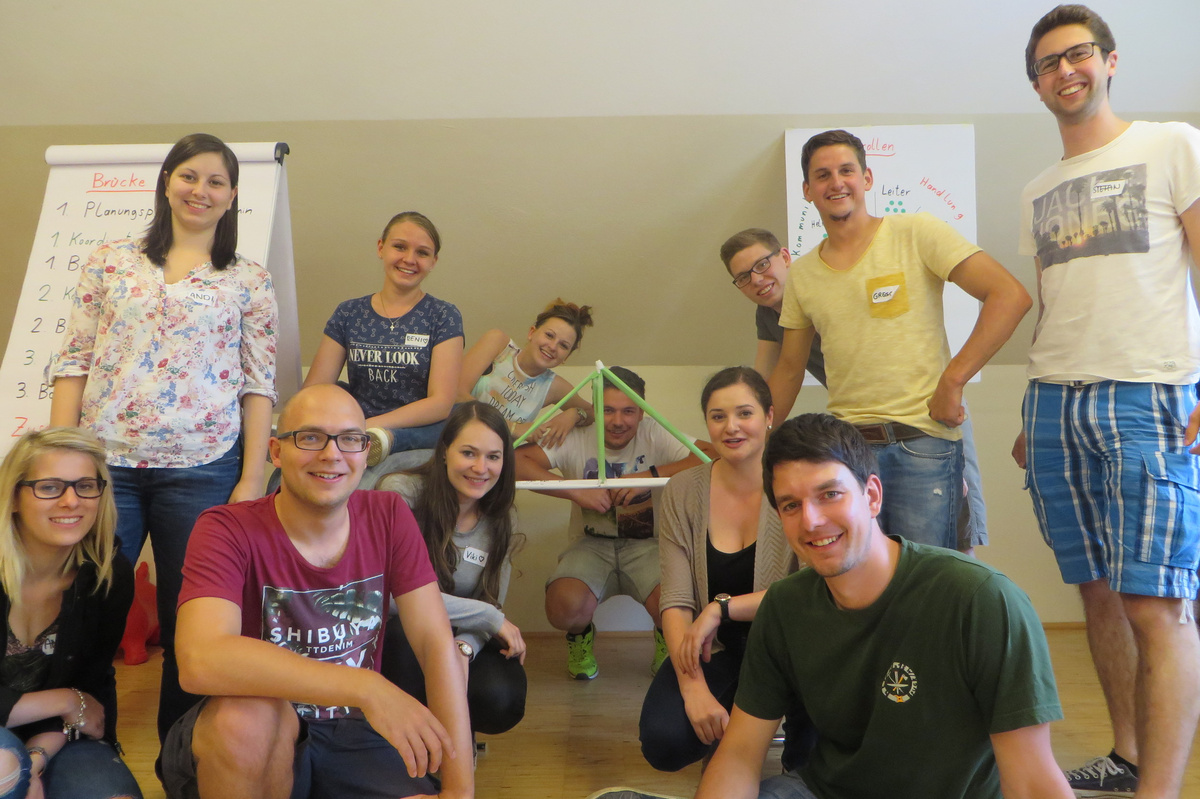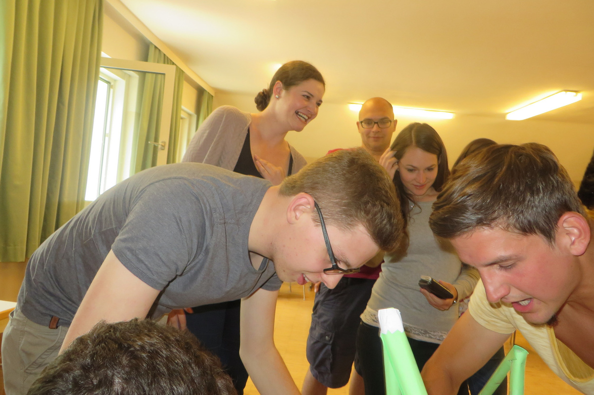 Um 8 Uhr starteten wir im Gemeindezentrum Tragöß - St. Katharein mit unserer Vorstandsklausur. Unser Regionalbetreuer und LJ-Trainer Josef Sauseng hatte viele interessante Dinge für uns vorbereitet. Im Freien machten wir einige Aktivierungsübungen und versuchten unter anderem auch den Gordischen Knoten zu entwirren. Die Vorstellrunde fand im Zuge einer Anzeige statt, die jeder über sich selbst verfasste - an Kreativität wurde natürlich nicht gespart. Mit Hilfe eines Persönlichkeitstests stellten wir auch unsere Rollen im Team fest. Man kann wirklich sagen, dass unsere Rollenverteilung annähernd perfekt funktioniert. Vor dem Mittagessen machten wir uns noch Gedanken über Grußworte, die wir bei diversen Generalversammlungen unserer Ortsgruppen verwenden könnten. Darauf folgte natürlich auch der große Auftritt, bei dem wir unsere persönlichen Grußworte zum Besten gaben, und uns dem Feedback zwei unserer Vorstandskollegen stellten. Am Nachmittag stand dann die Lösung des Rätsels rund um den Obelisken Zin auf dem Programm, was kein großes Problem darstellte. Zum Abschluss stellten wir noch unsere baulichen Fähigkeiten unter Beweis. Aufgeteilt in zwei Gruppen war es unsere Aufgabe, jeweils eine Brückenhälfte zu bauen, die dann zum Schluss mit der anderen zusammengebaut werden sollte. Neben den Bauphasen gab es immer wieder Koordinationstreffen, bei dem sich die beiden Bauleiter besprechen und austauschen konnten. Genaue Maße, Ausführungen und Gestaltung wurden so untereinander abgestimmt. Nach dem erfolgreichen Zusammenbau testeten wir natürlich die Standfestigkeit unseres Bauwerks. Über vier Kilogramm konnten wir schlussendlich auf die Brücke legen, ohne dass sie zusammenbrach. Diese Brücke symbolisiert in gewisser Weise auch unser Bezirksvorstandsteam. Gemeinsam schaffen wir fast alles, wenn wir uns gegenseitig stützen und uns aufeinander verlassen können. Durch diese Klausur haben wir uns gegenseitig wieder ein Stück besser kennengelernt, und sind weiter zusammengewachsen. Danke Josef, für die hervorragende Vorbereitung, es waren für jeden viele neue Sachen dabei!