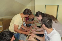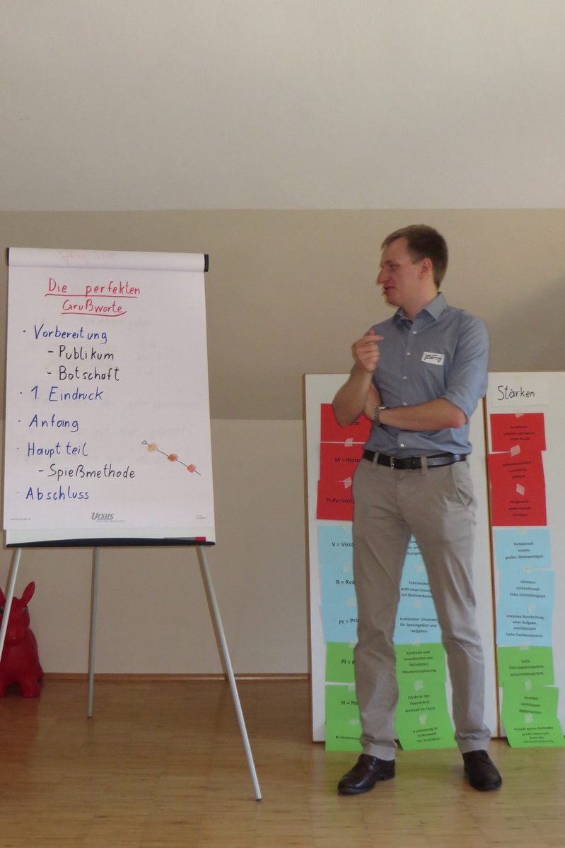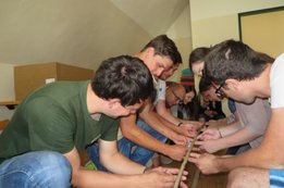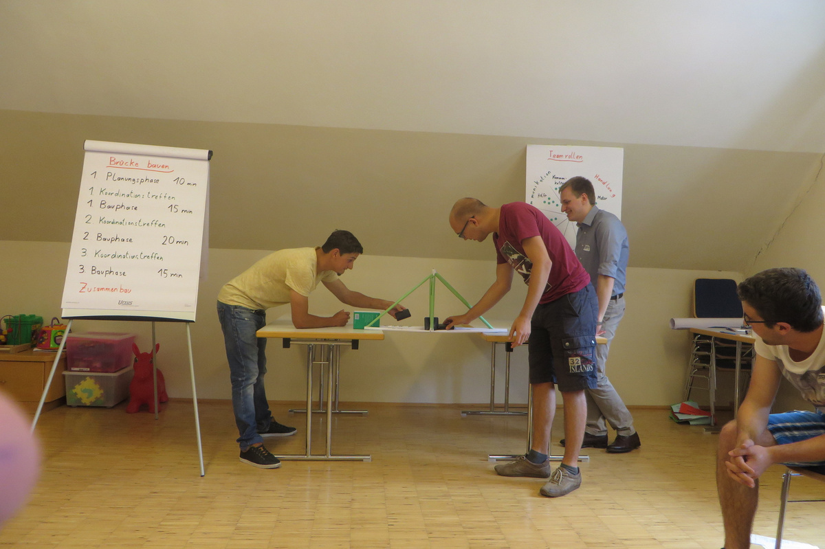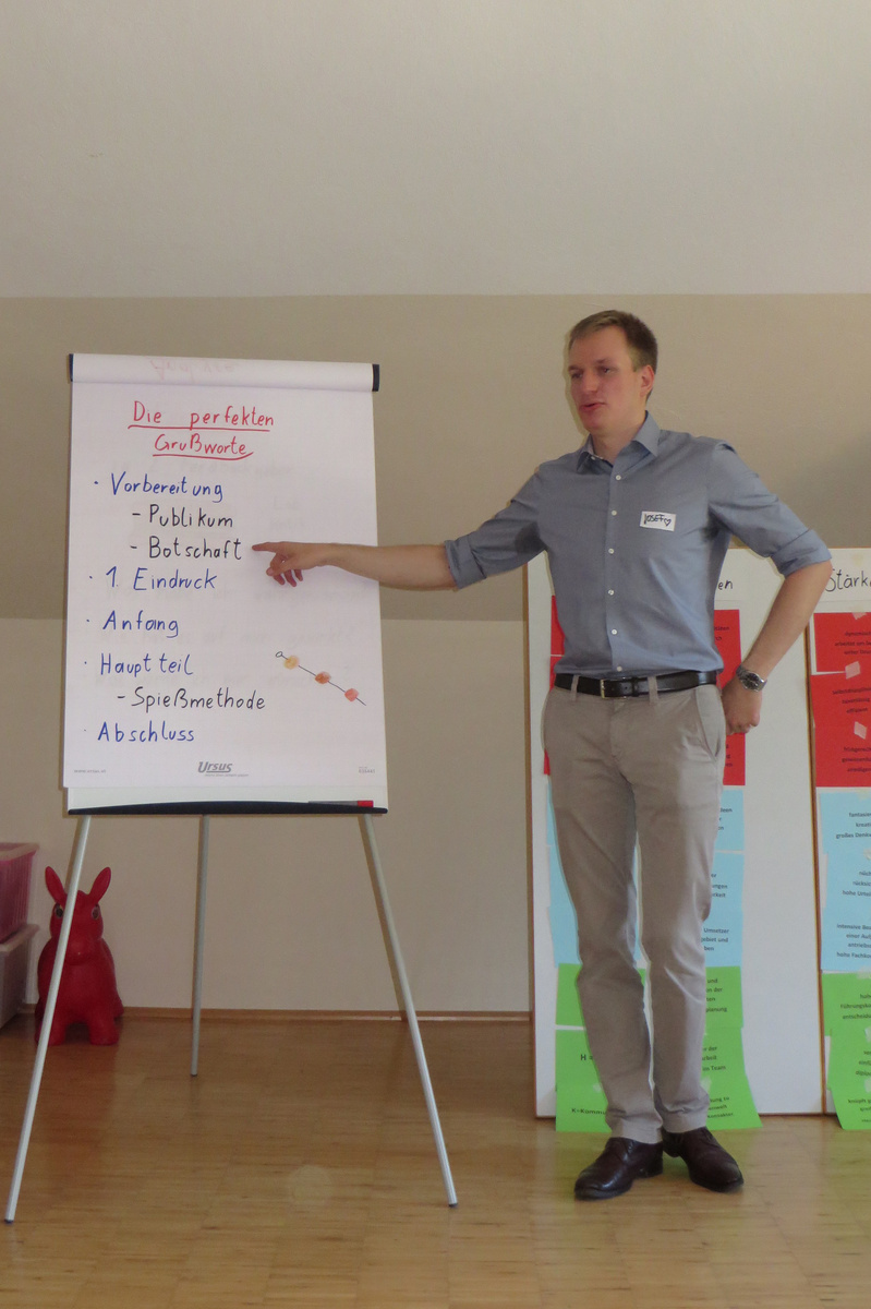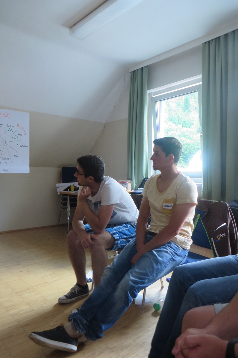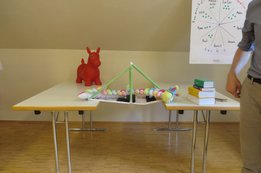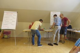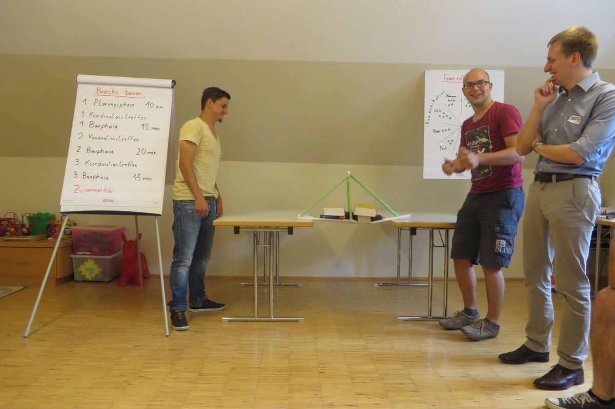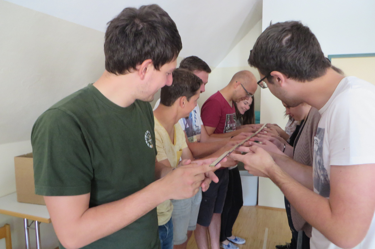 Um 8 Uhr starteten wir im Gemeindezentrum Tragöß - St. Katharein mit unserer Vorstandsklausur. Unser Regionalbetreuer und LJ-Trainer Josef Sauseng hatte viele interessante Dinge für uns vorbereitet. Im Freien machten wir einige Aktivierungsübungen und versuchten unter anderem auch den Gordischen Knoten zu entwirren. Die Vorstellrunde fand im Zuge einer Anzeige statt, die jeder über sich selbst verfasste - an Kreativität wurde natürlich nicht gespart. Mit Hilfe eines Persönlichkeitstests stellten wir auch unsere Rollen im Team fest. Man kann wirklich sagen, dass unsere Rollenverteilung annähernd perfekt funktioniert. Vor dem Mittagessen machten wir uns noch Gedanken über Grußworte, die wir bei diversen Generalversammlungen unserer Ortsgruppen verwenden könnten. Darauf folgte natürlich auch der große Auftritt, bei dem wir unsere persönlichen Grußworte zum Besten gaben, und uns dem Feedback zwei unserer Vorstandskollegen stellten. Am Nachmittag stand dann die Lösung des Rätsels rund um den Obelisken Zin auf dem Programm, was kein großes Problem darstellte. Zum Abschluss stellten wir noch unsere baulichen Fähigkeiten unter Beweis. Aufgeteilt in zwei Gruppen war es unsere Aufgabe, jeweils eine Brückenhälfte zu bauen, die dann zum Schluss mit der anderen zusammengebaut werden sollte. Neben den Bauphasen gab es immer wieder Koordinationstreffen, bei dem sich die beiden Bauleiter besprechen und austauschen konnten. Genaue Maße, Ausführungen und Gestaltung wurden so untereinander abgestimmt. Nach dem erfolgreichen Zusammenbau testeten wir natürlich die Standfestigkeit unseres Bauwerks. Über vier Kilogramm konnten wir schlussendlich auf die Brücke legen, ohne dass sie zusammenbrach. Diese Brücke symbolisiert in gewisser Weise auch unser Bezirksvorstandsteam. Gemeinsam schaffen wir fast alles, wenn wir uns gegenseitig stützen und uns aufeinander verlassen können. Durch diese Klausur haben wir uns gegenseitig wieder ein Stück besser kennengelernt, und sind weiter zusammengewachsen. Danke Josef, für die hervorragende Vorbereitung, es waren für jeden viele neue Sachen dabei!