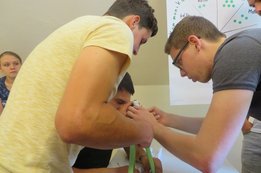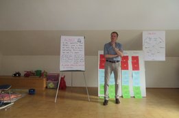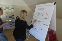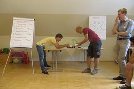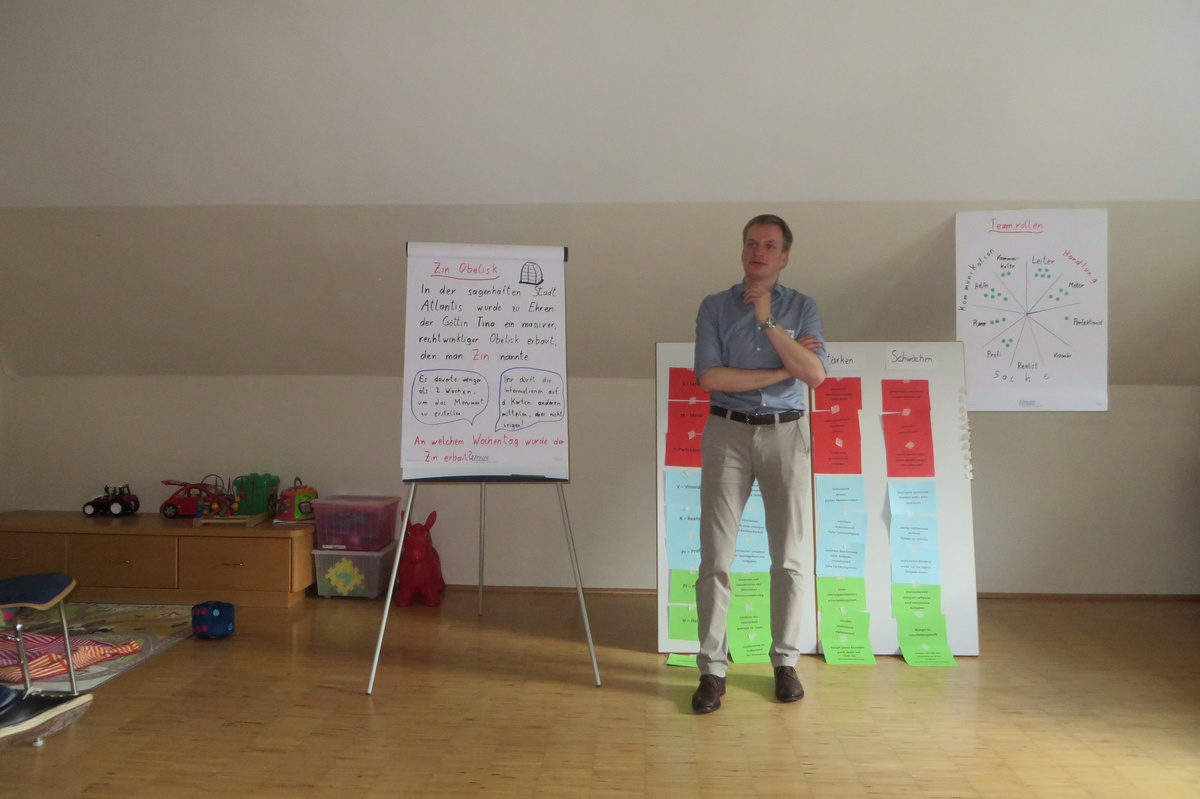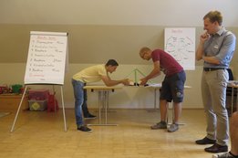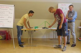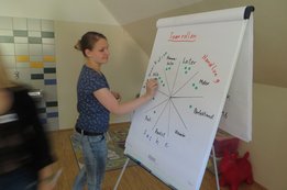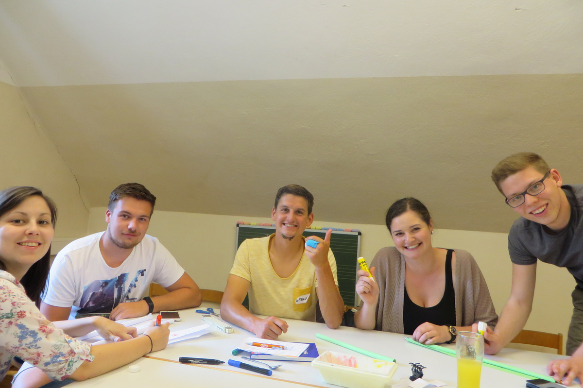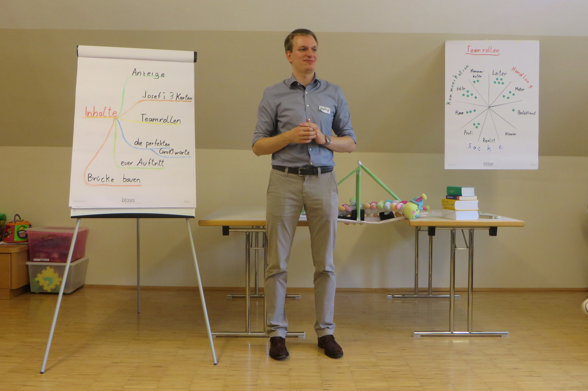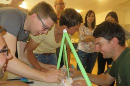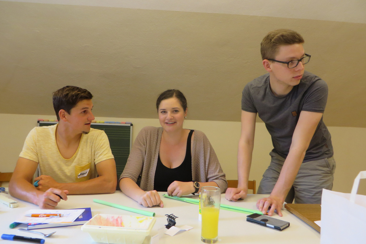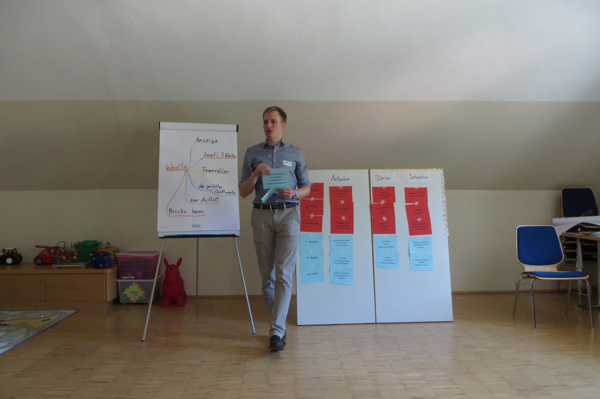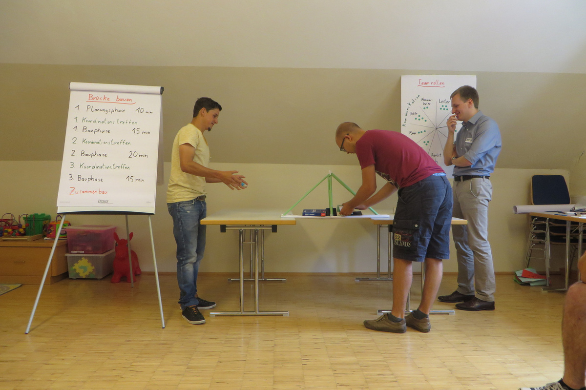 Um 8 Uhr starteten wir im Gemeindezentrum Tragöß - St. Katharein mit unserer Vorstandsklausur. Unser Regionalbetreuer und LJ-Trainer Josef Sauseng hatte viele interessante Dinge für uns vorbereitet. Im Freien machten wir einige Aktivierungsübungen und versuchten unter anderem auch den Gordischen Knoten zu entwirren. Die Vorstellrunde fand im Zuge einer Anzeige statt, die jeder über sich selbst verfasste - an Kreativität wurde natürlich nicht gespart. Mit Hilfe eines Persönlichkeitstests stellten wir auch unsere Rollen im Team fest. Man kann wirklich sagen, dass unsere Rollenverteilung annähernd perfekt funktioniert. Vor dem Mittagessen machten wir uns noch Gedanken über Grußworte, die wir bei diversen Generalversammlungen unserer Ortsgruppen verwenden könnten. Darauf folgte natürlich auch der große Auftritt, bei dem wir unsere persönlichen Grußworte zum Besten gaben, und uns dem Feedback zwei unserer Vorstandskollegen stellten. Am Nachmittag stand dann die Lösung des Rätsels rund um den Obelisken Zin auf dem Programm, was kein großes Problem darstellte. Zum Abschluss stellten wir noch unsere baulichen Fähigkeiten unter Beweis. Aufgeteilt in zwei Gruppen war es unsere Aufgabe, jeweils eine Brückenhälfte zu bauen, die dann zum Schluss mit der anderen zusammengebaut werden sollte. Neben den Bauphasen gab es immer wieder Koordinationstreffen, bei dem sich die beiden Bauleiter besprechen und austauschen konnten. Genaue Maße, Ausführungen und Gestaltung wurden so untereinander abgestimmt. Nach dem erfolgreichen Zusammenbau testeten wir natürlich die Standfestigkeit unseres Bauwerks. Über vier Kilogramm konnten wir schlussendlich auf die Brücke legen, ohne dass sie zusammenbrach. Diese Brücke symbolisiert in gewisser Weise auch unser Bezirksvorstandsteam. Gemeinsam schaffen wir fast alles, wenn wir uns gegenseitig stützen und uns aufeinander verlassen können. Durch diese Klausur haben wir uns gegenseitig wieder ein Stück besser kennengelernt, und sind weiter zusammengewachsen. Danke Josef, für die hervorragende Vorbereitung, es waren für jeden viele neue Sachen dabei!
